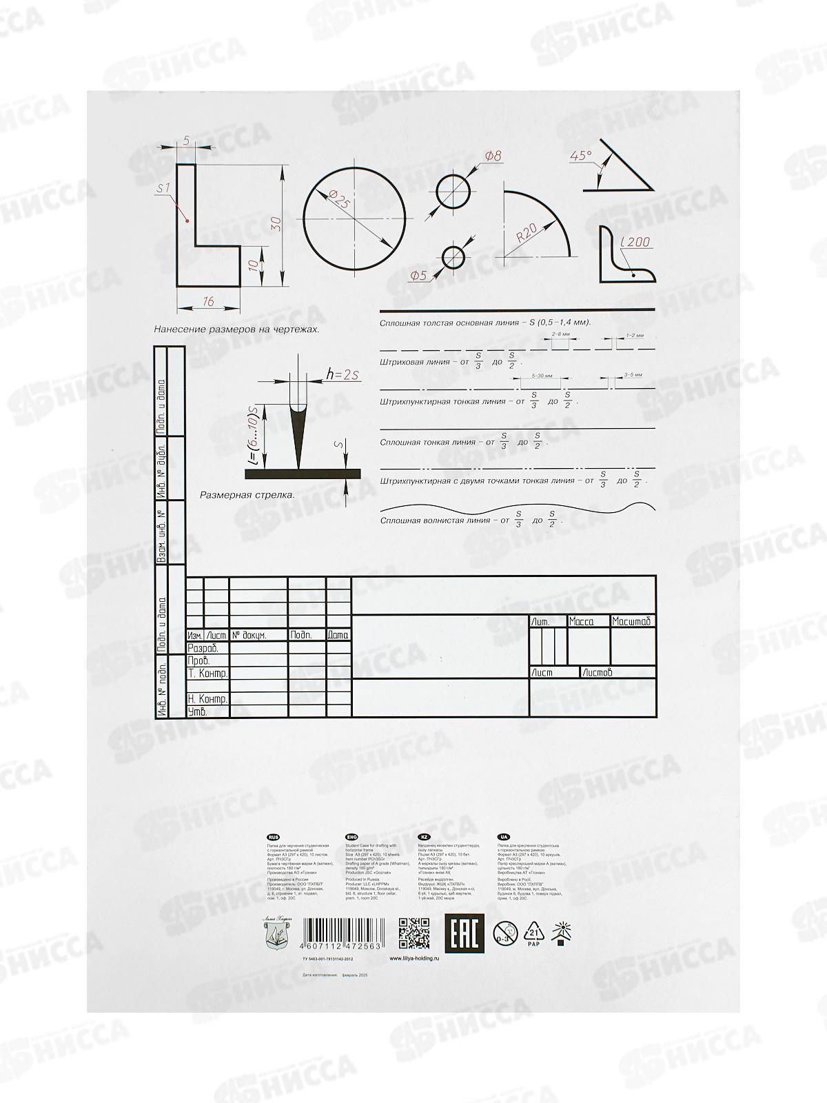 Папка д/черч. А3 10л ЛХ (ПЧ3СГр) рамка гориз. *20