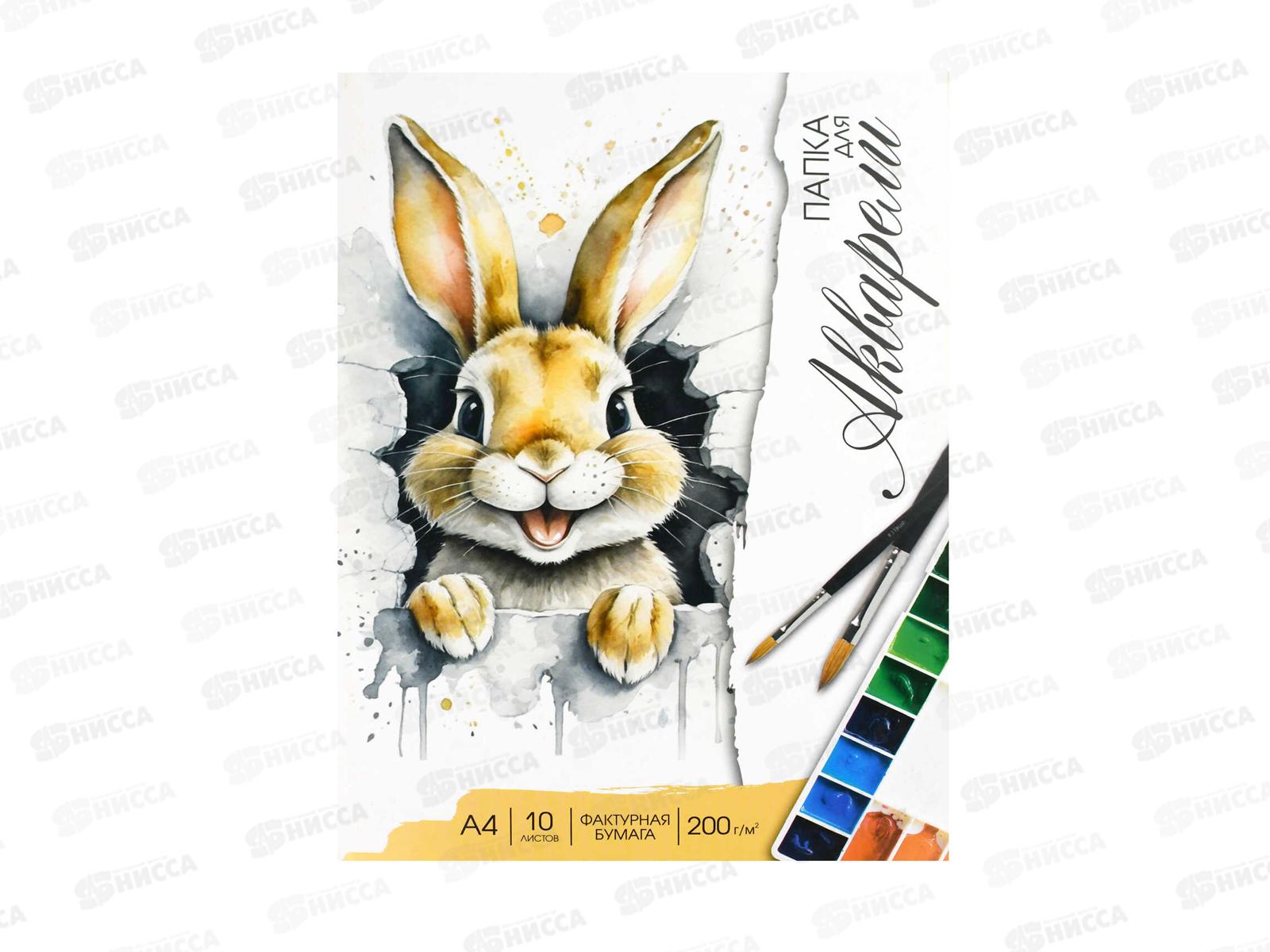 Папка д/акварели А4 10л ФЕН Акварельный заяц, 200г/м2 69937 *30