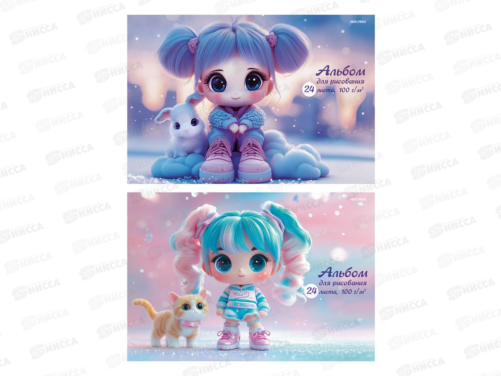 Альбом для рисования 24л ПП Девочки и зверята - 1, 2 диз., 24-7875