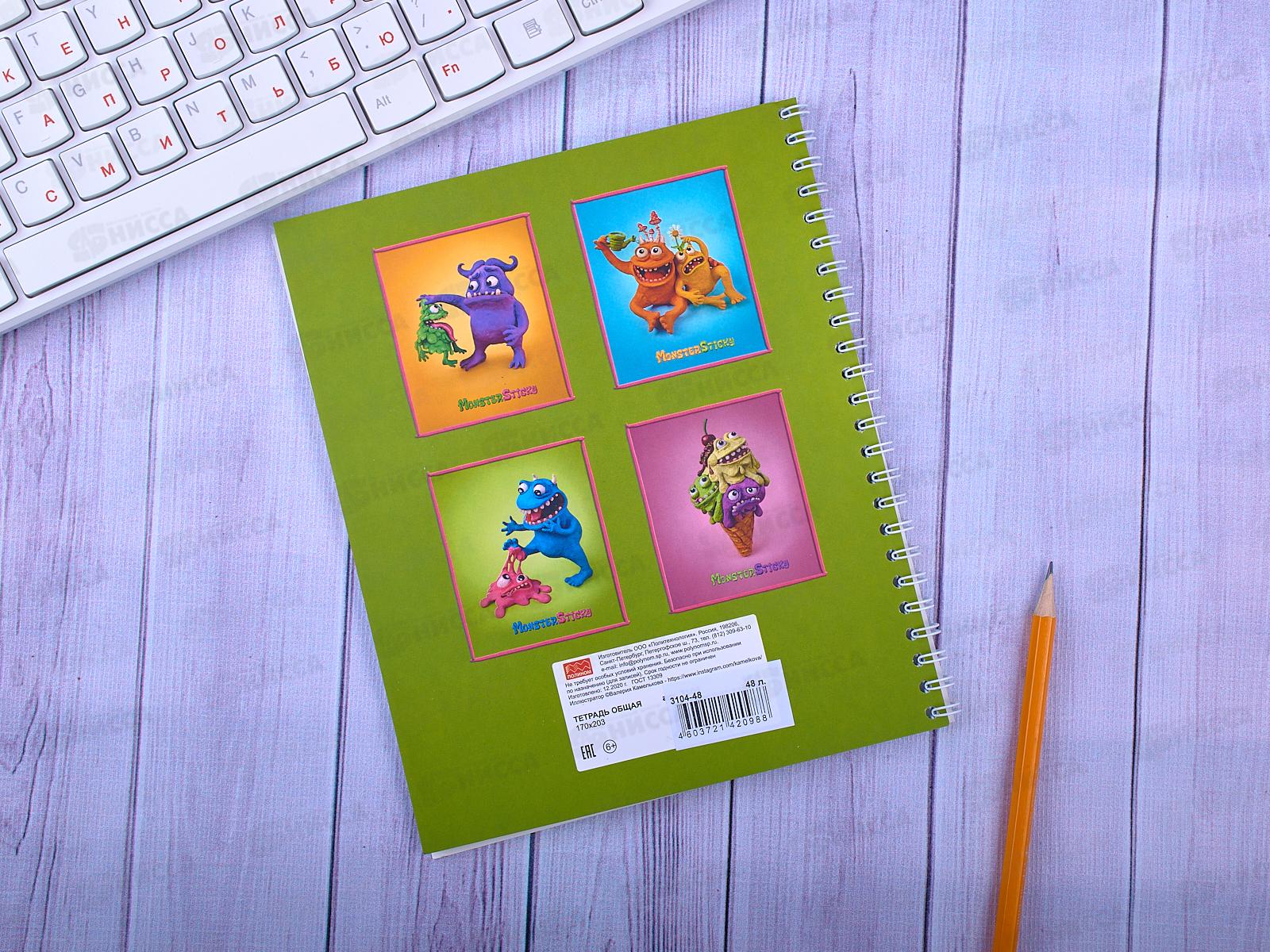 Тетрадь 48 листов клетка. ПЛН MonsterSticky, металический гребень., 3104-48 *30