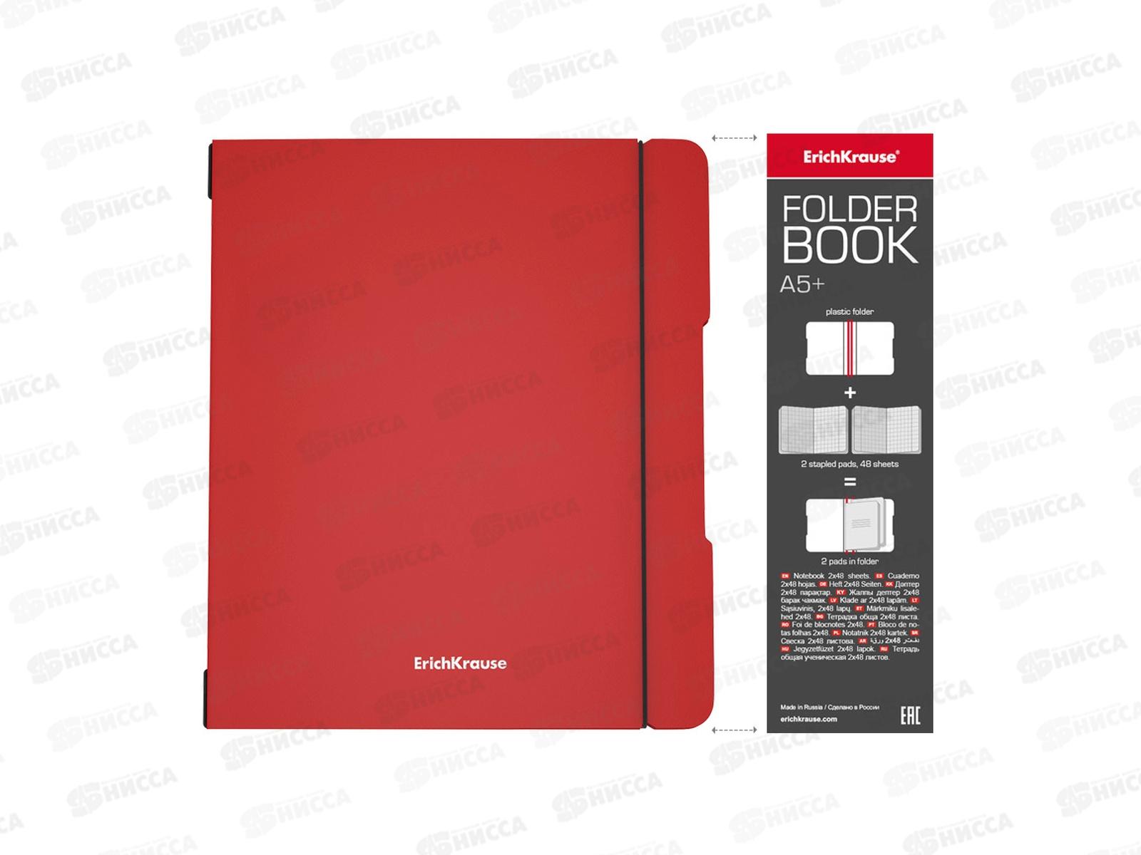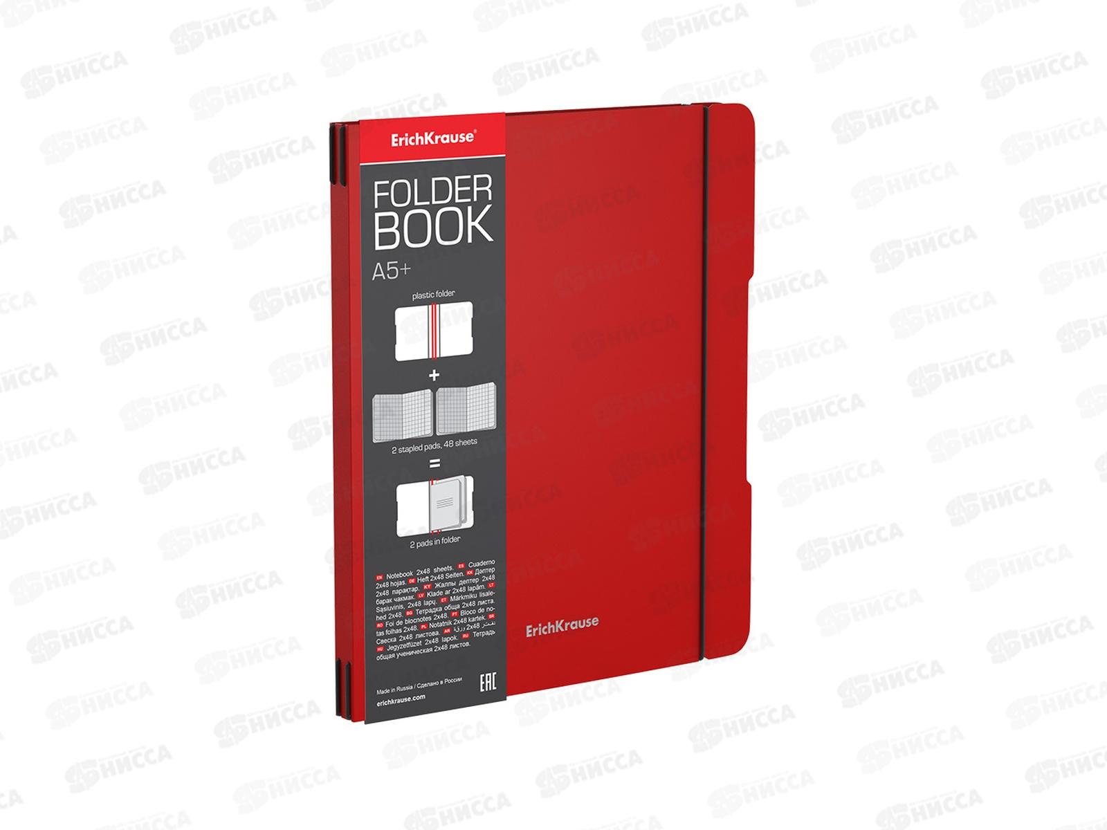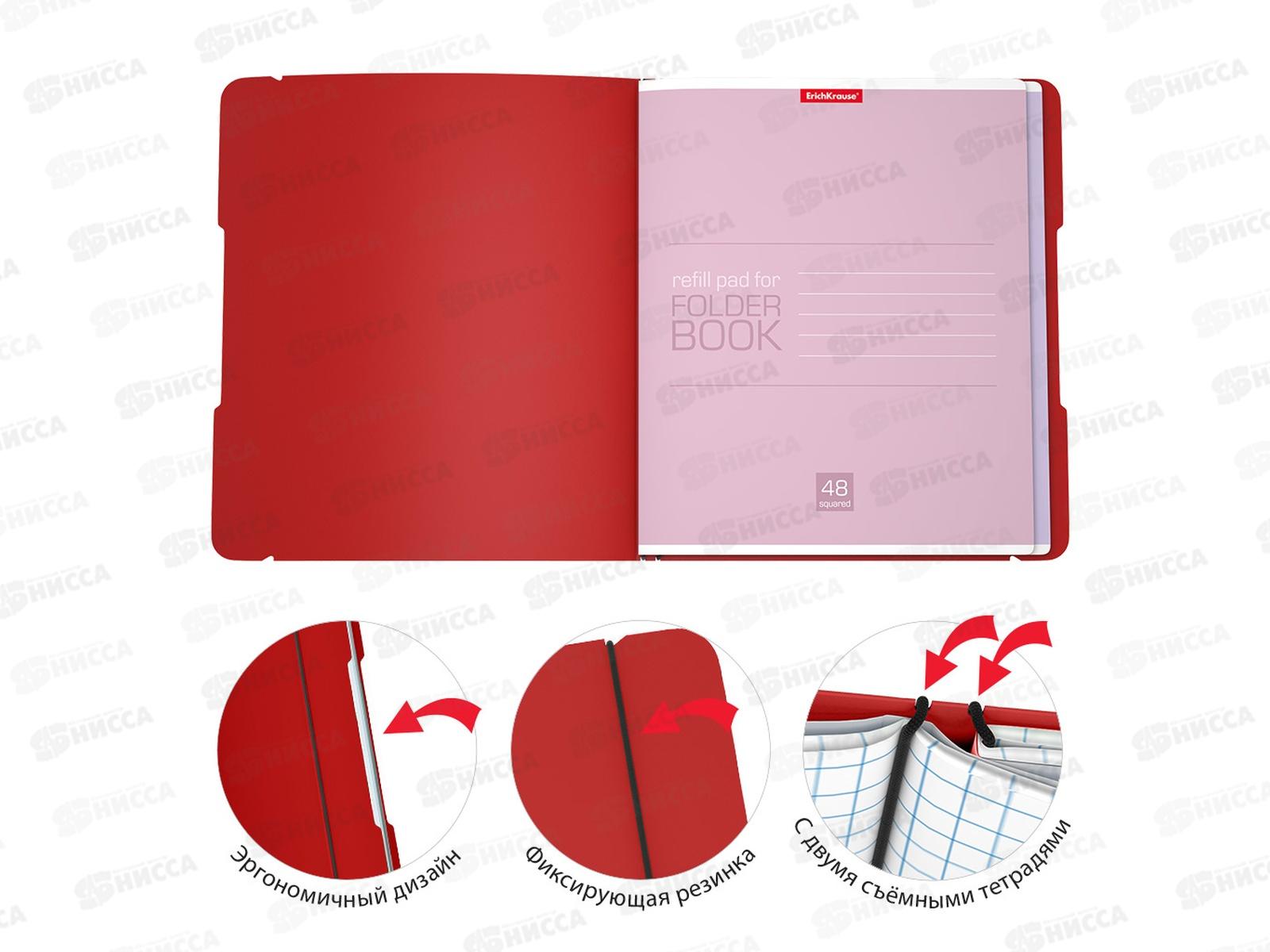 Тетрадь 48 листов клетка ПОЛИ FolderBook А5+, сьемная пластиковая обложка , красная 48023