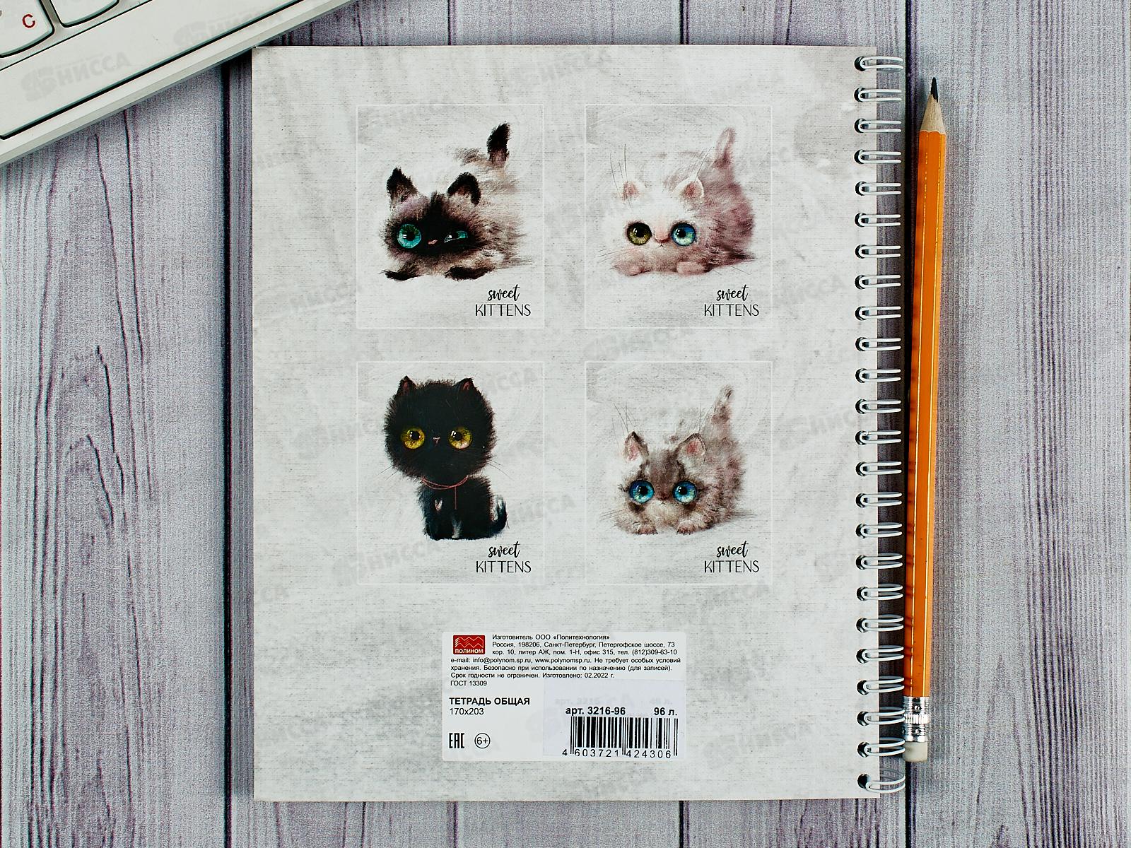 Тетрадь 96л кл. ПЛН Глазастые котики, мет.греб., 3216-96 *20