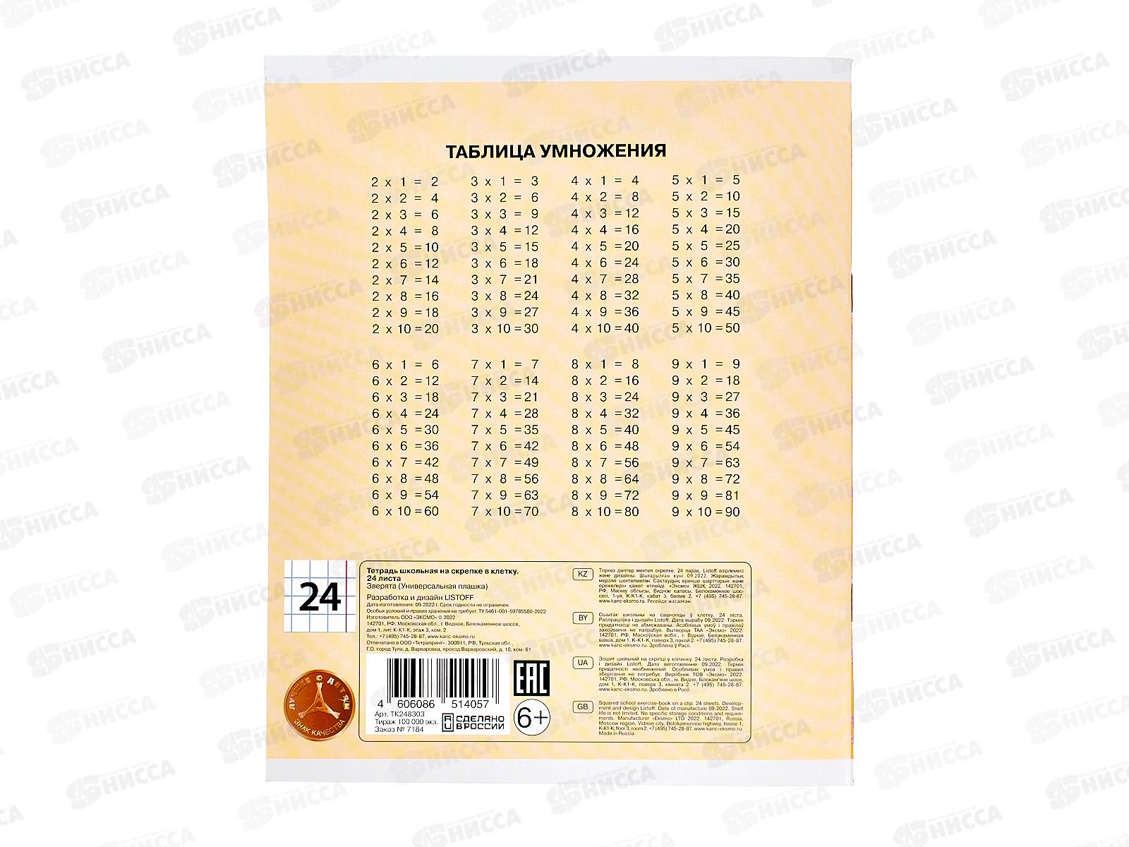 Тетрадь 24листа клетка ЭКСМ Зверята (универсальная плашка) ТК248303 *60