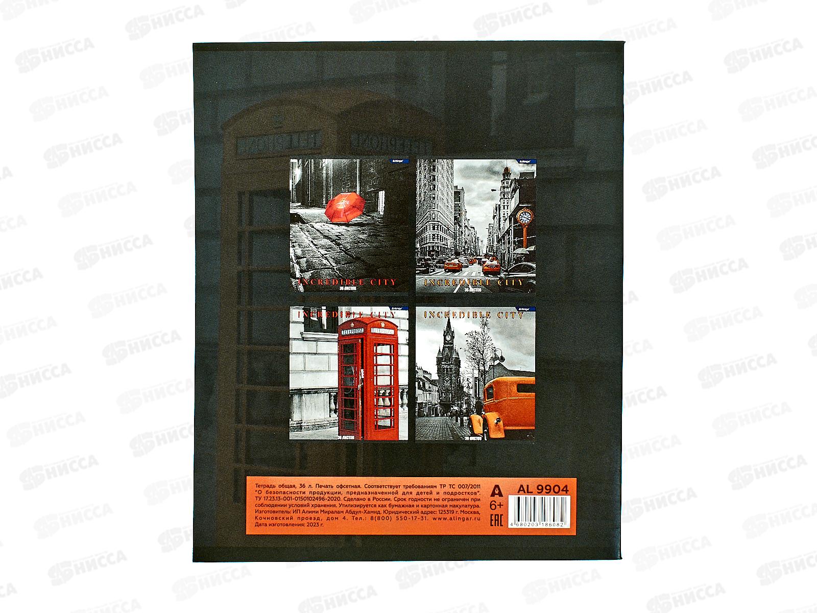 Тетрадь 36листов клетка Alingar "Городские виды" А5 4 дизайна AL9904 *12/72