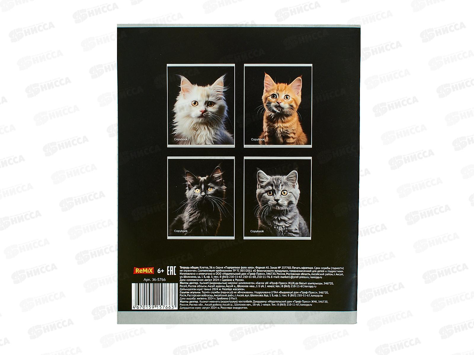 Тетрадь 36л клетка Remix Портретное фото кота, второй блок, 36-5766 *120
