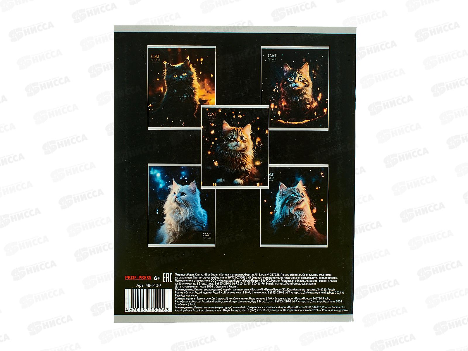 Тетрадь 48л клетка ПП Котики и огоньки, мел., 48-5130 *10/100