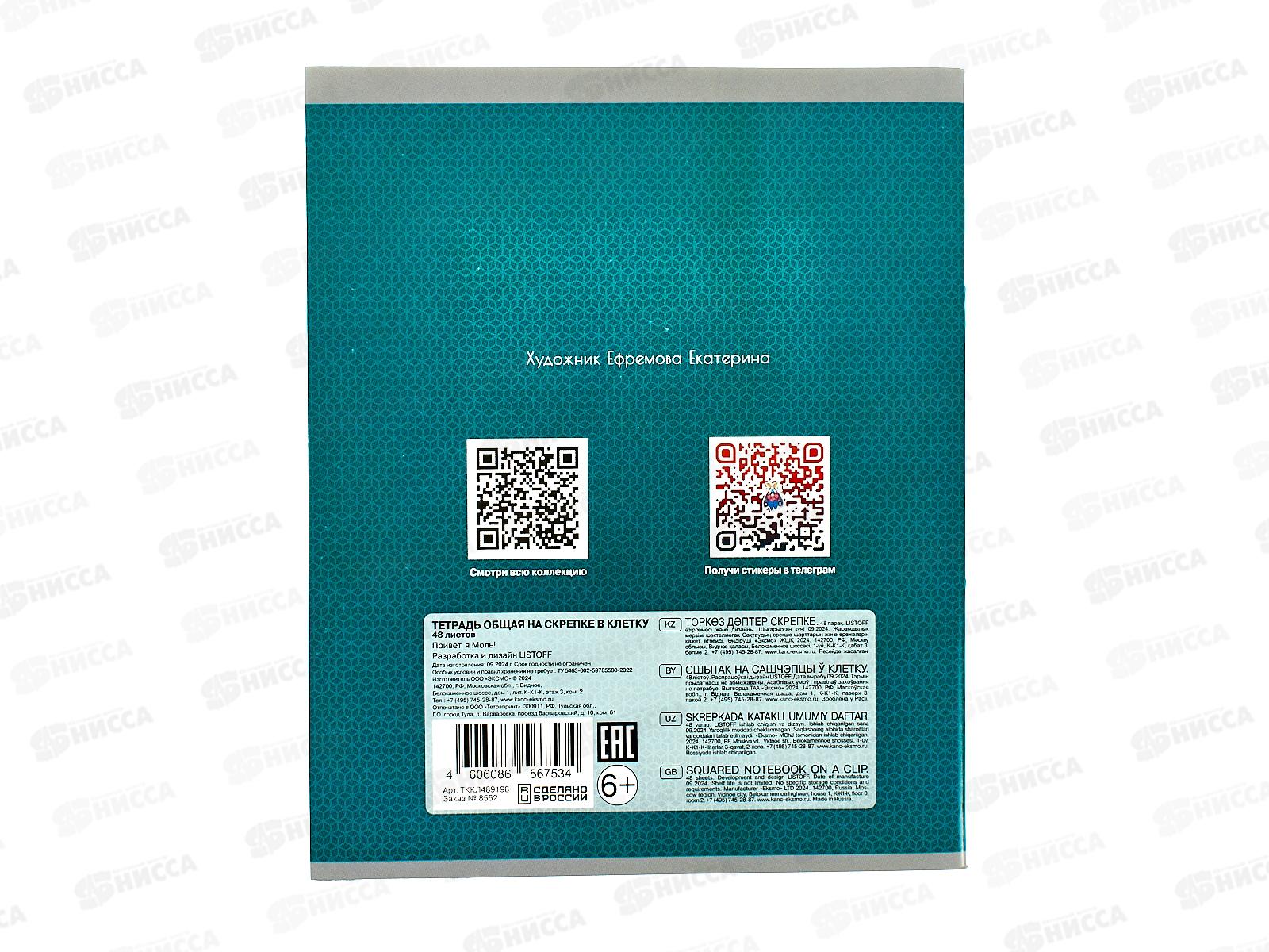 Тетрадь 48л кл. ЭКСМ Привет, я Моль! ТККЛ489198 *10/100