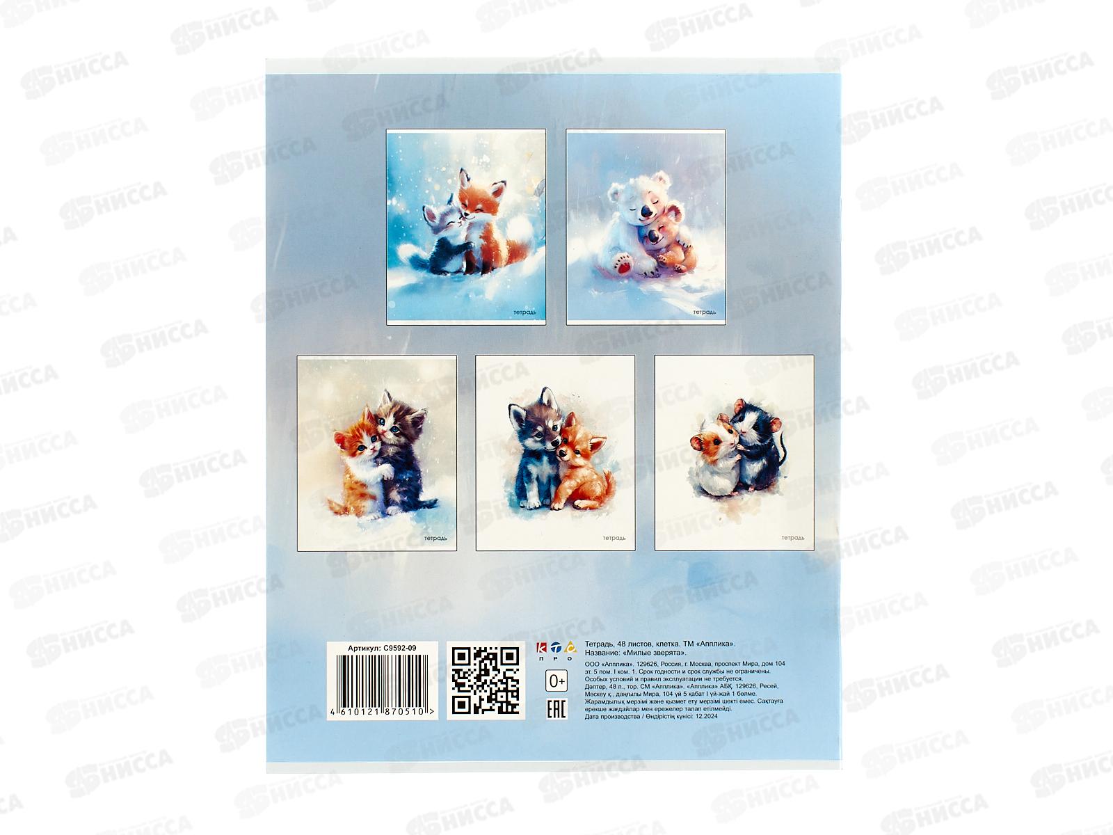 Тетрадь 48л кл. Апплика Милые зверята, блестки С9592-09 *80