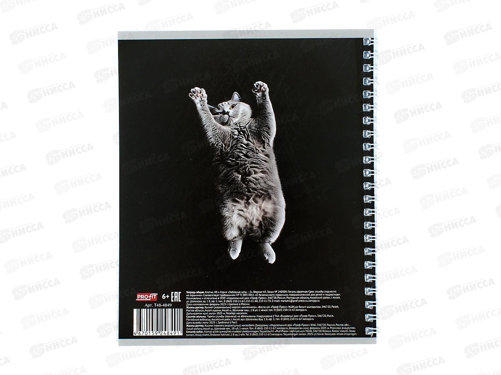 Тетрадь 48л клетка Profit Забавные коты - 2, гребень, Т48-4849 *80