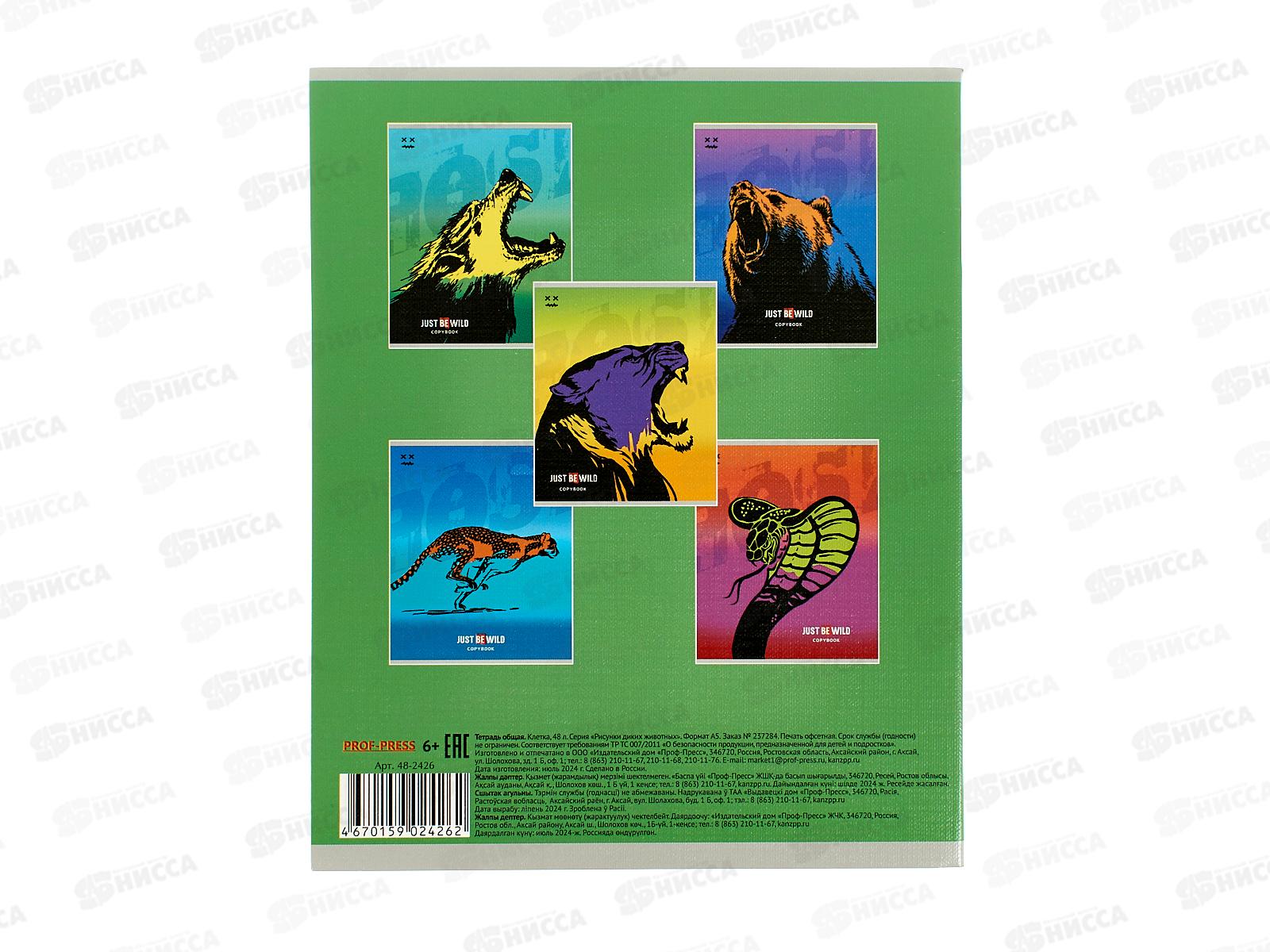 Тетрадь 48л клетка ПП Рисунки диких животных, мел., 48-2426 *10/80