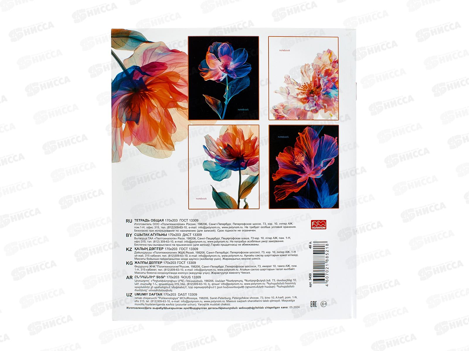 Тетрадь 48л кл. ПЛН Цветы, скрепка 4 диз. 3450 *40
