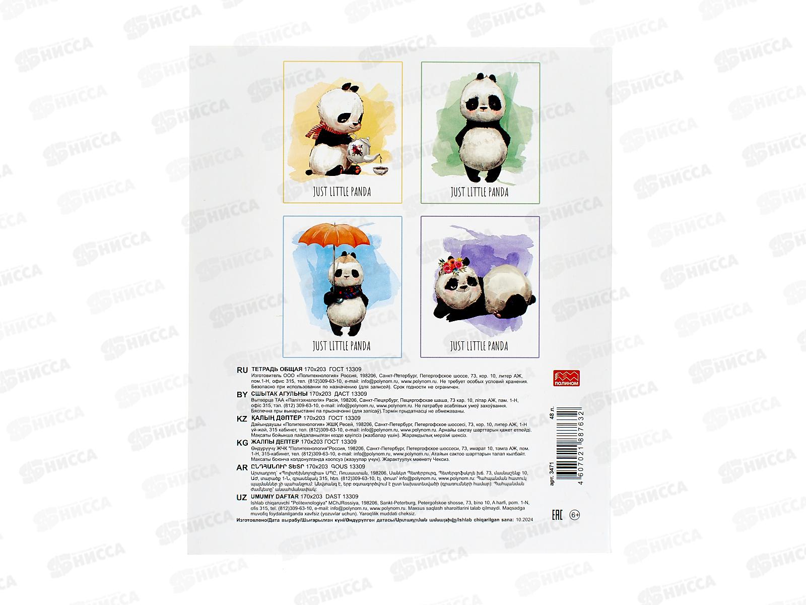 Тетрадь 48л кл. ПЛН Маленький панда, скрепка 4 диз. 3471 *40