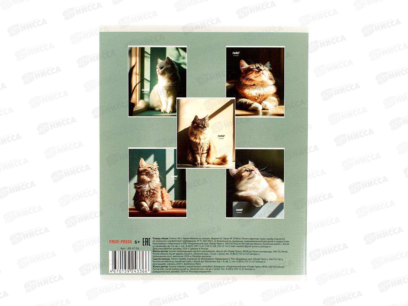 Тетрадь 48л клетка ПП Котики на солнце, 48-4336 *10/100