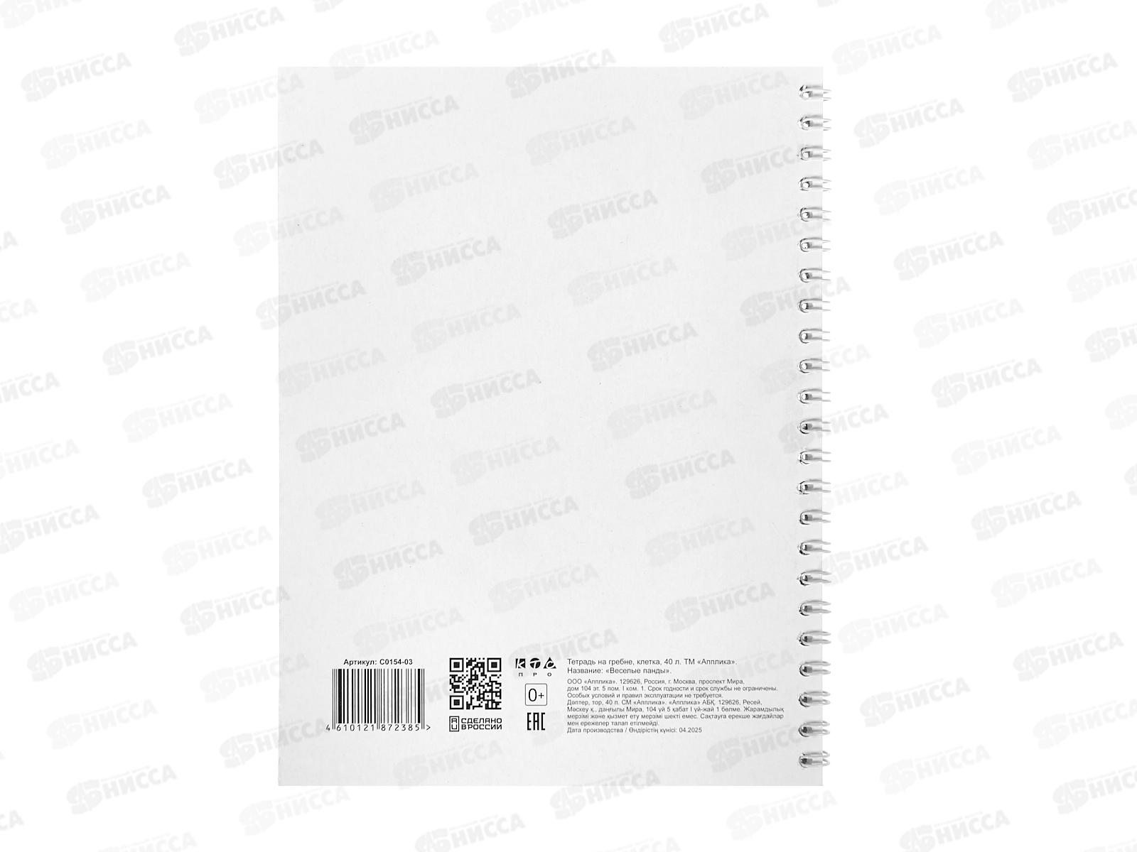 Тетрадь 40л кл. Апплика Веселые панды, греб. С0154-03 *80