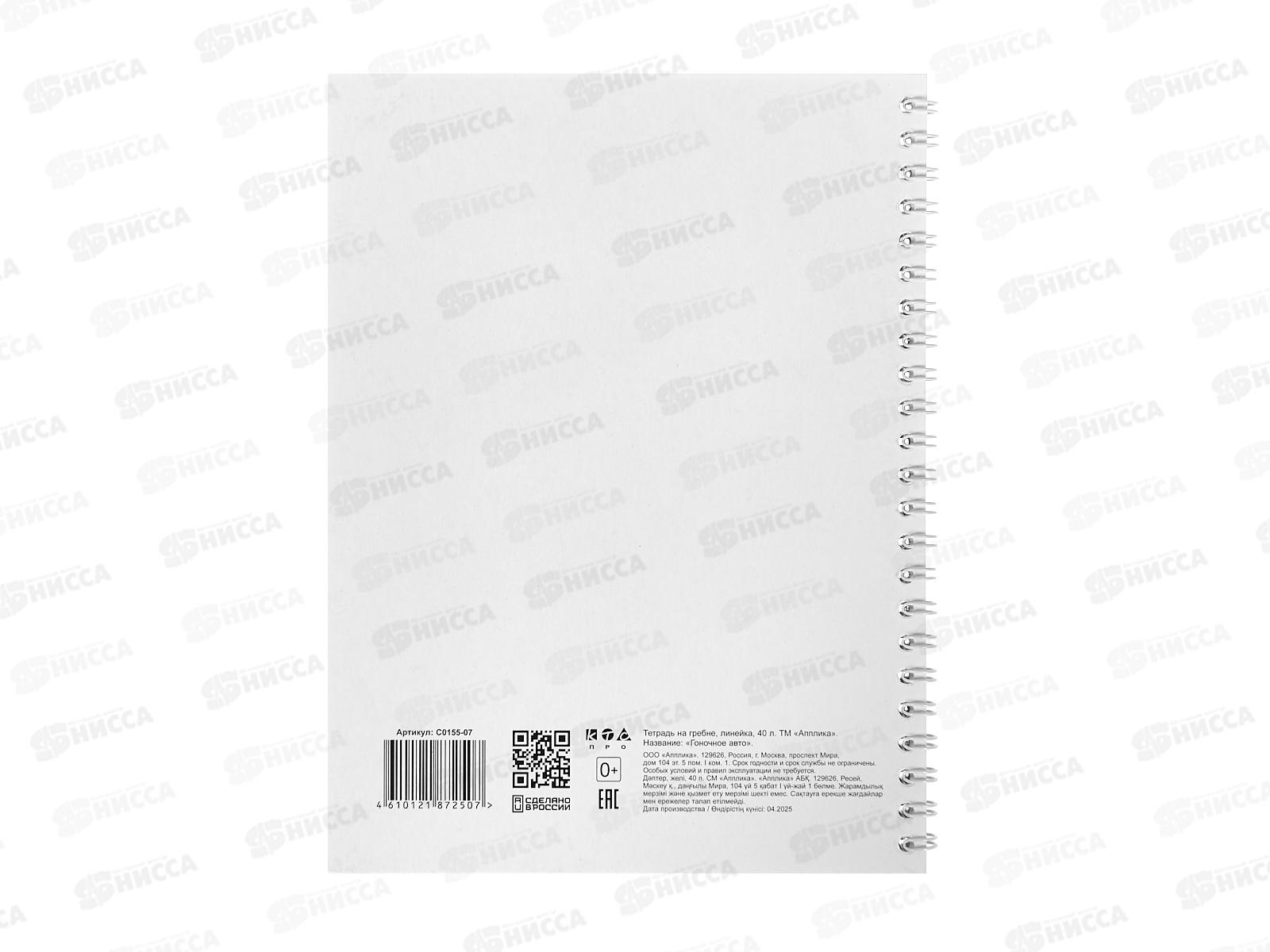 Тетрадь 40л лин. Апплика Гоночное авто, греб С0155-07 *80