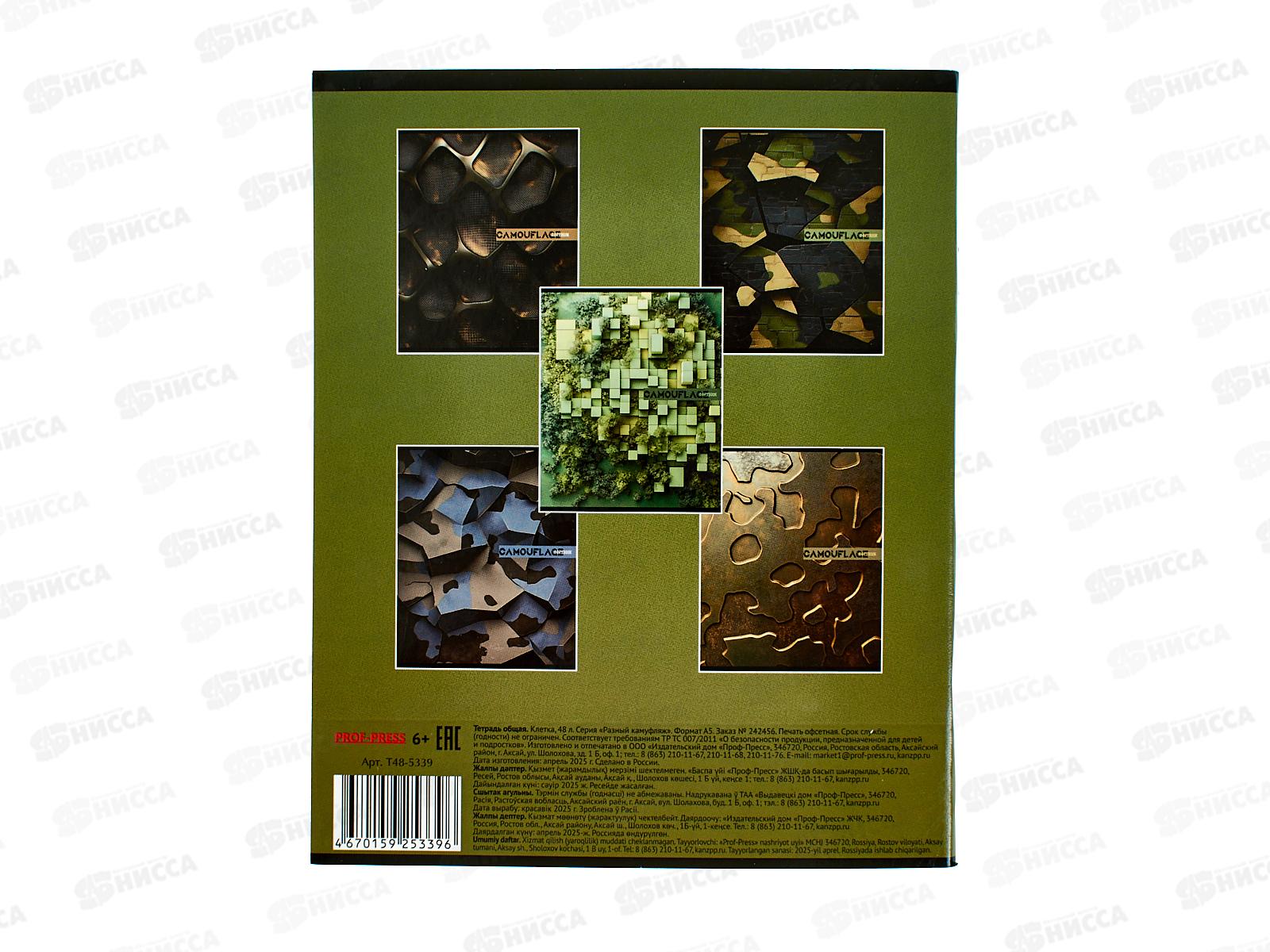 Тетрадь 48л клетка ПП Разный камуфляж, 5 диз., Т48-5339 *10/100