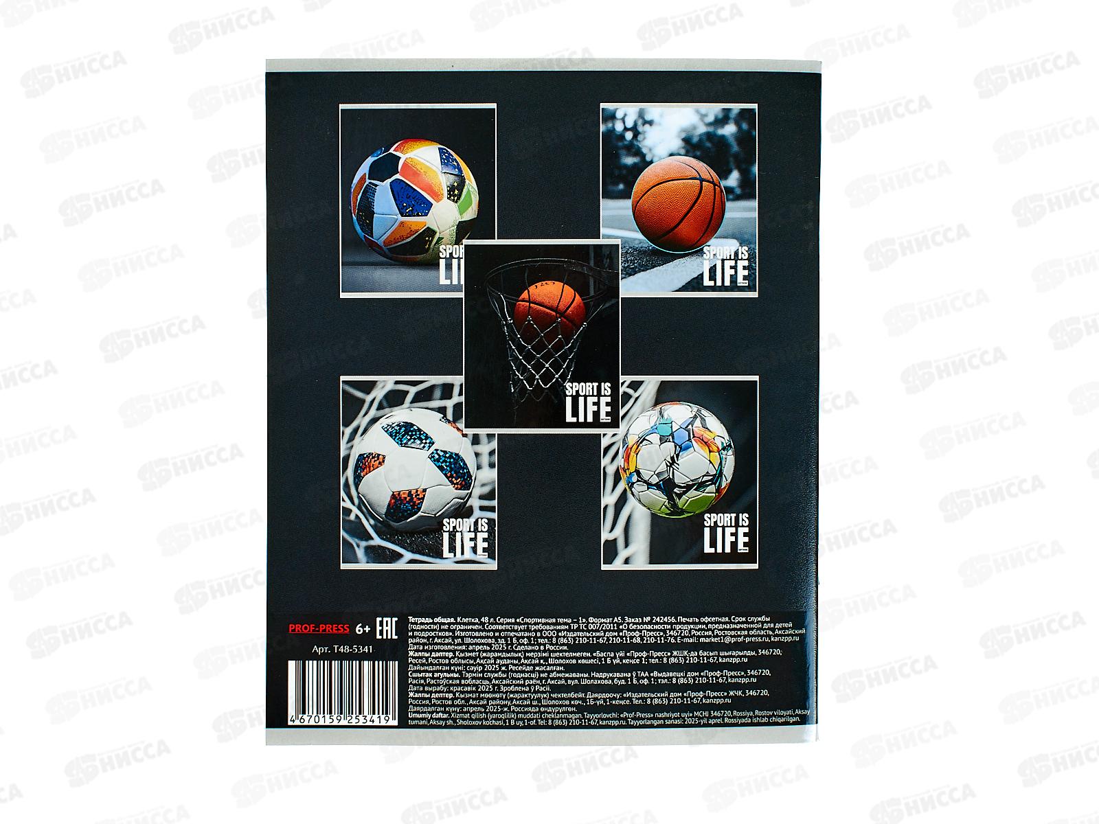 Тетрадь 48л клетка ПП Спортивная тема - 1, 5 диз., Т48-5341 *10/100