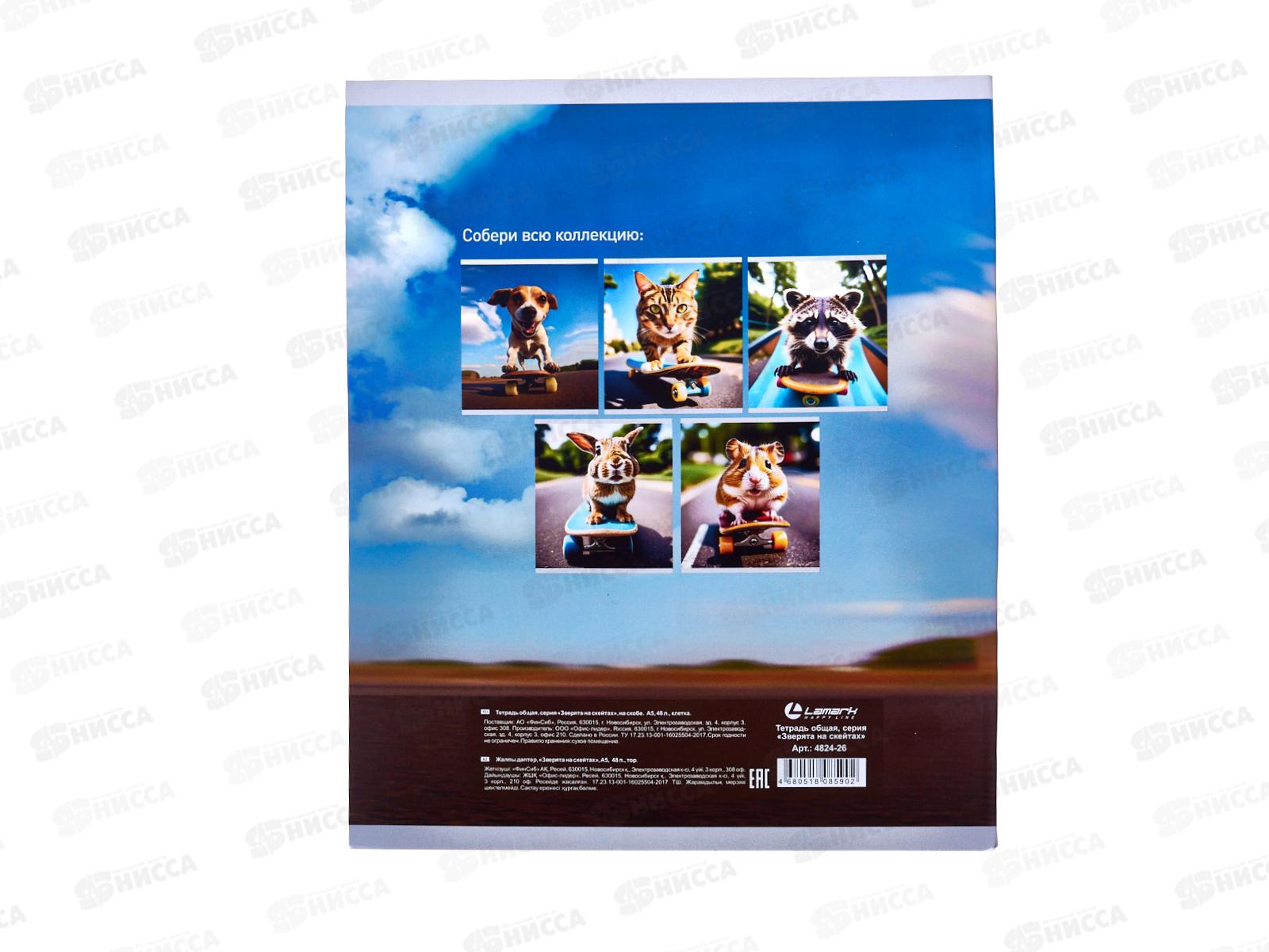 Тетрадь 48л кл. LAMARK Зверята на скейтах. на скобе 4824-26 *5/100