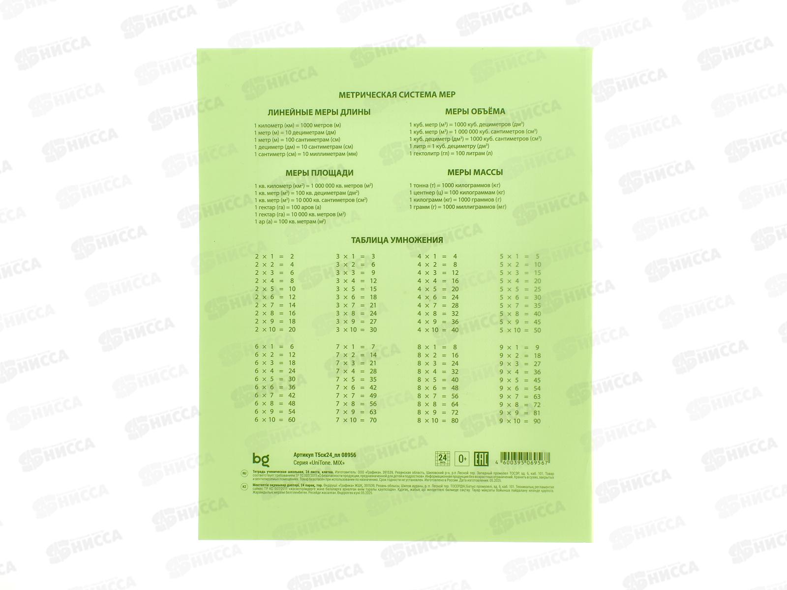 Тетрадь 24л кл. BG UniTone mix пластик. обл.прозрач. 08956 *10/120
