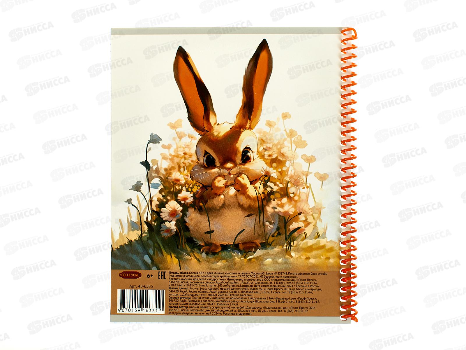 Тетрадь 48л клетка Collezione Милые животные и цветы, 48-6535 *5/80