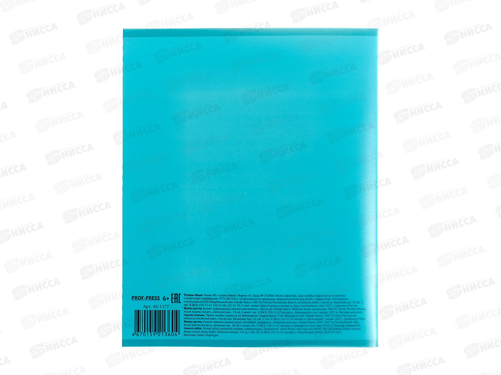 Тетрадь 48л линия ПП пласт. обл. plastic cover НЕОН, 5 цветов, 48-1377*5/100