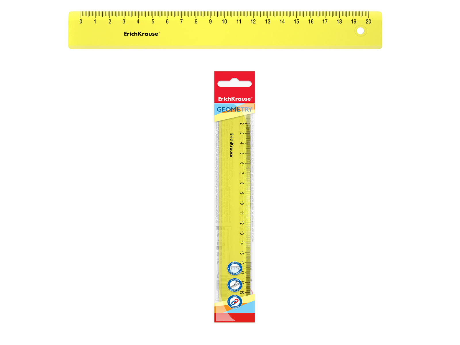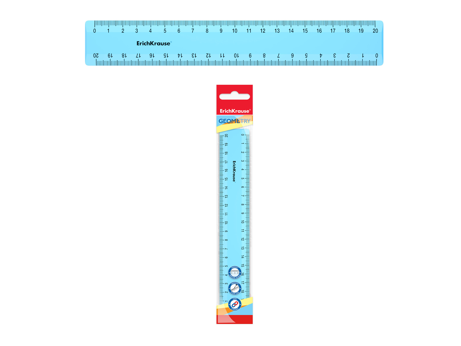 Непрозрачная линейка из высококачественного пластика. Четкая печать двухсторонней шкалы. Длина разметки – 20см.