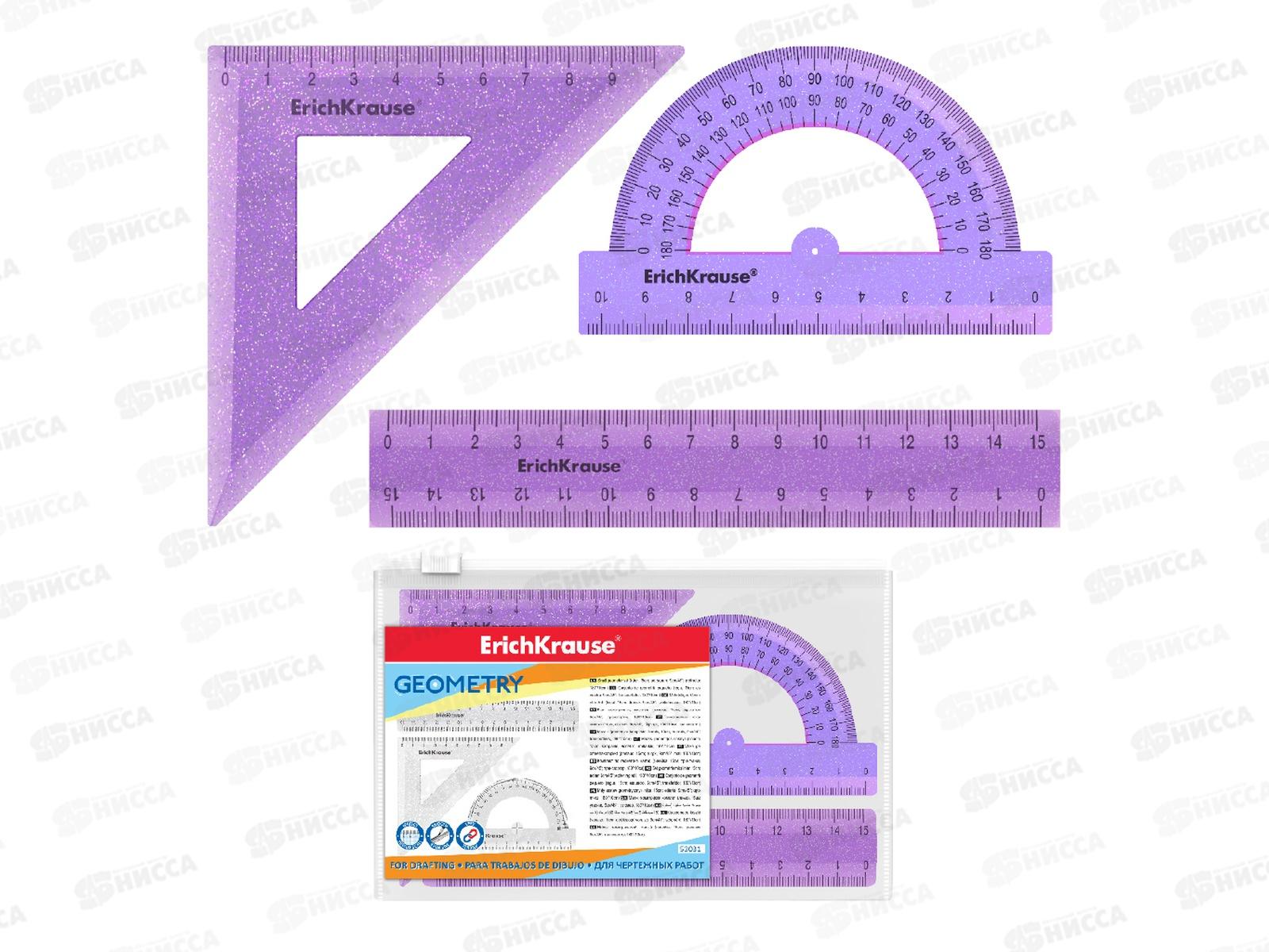 Набор геометрический Erich Krause Standart Glitter (линейка,угольник,транспортир), 53032