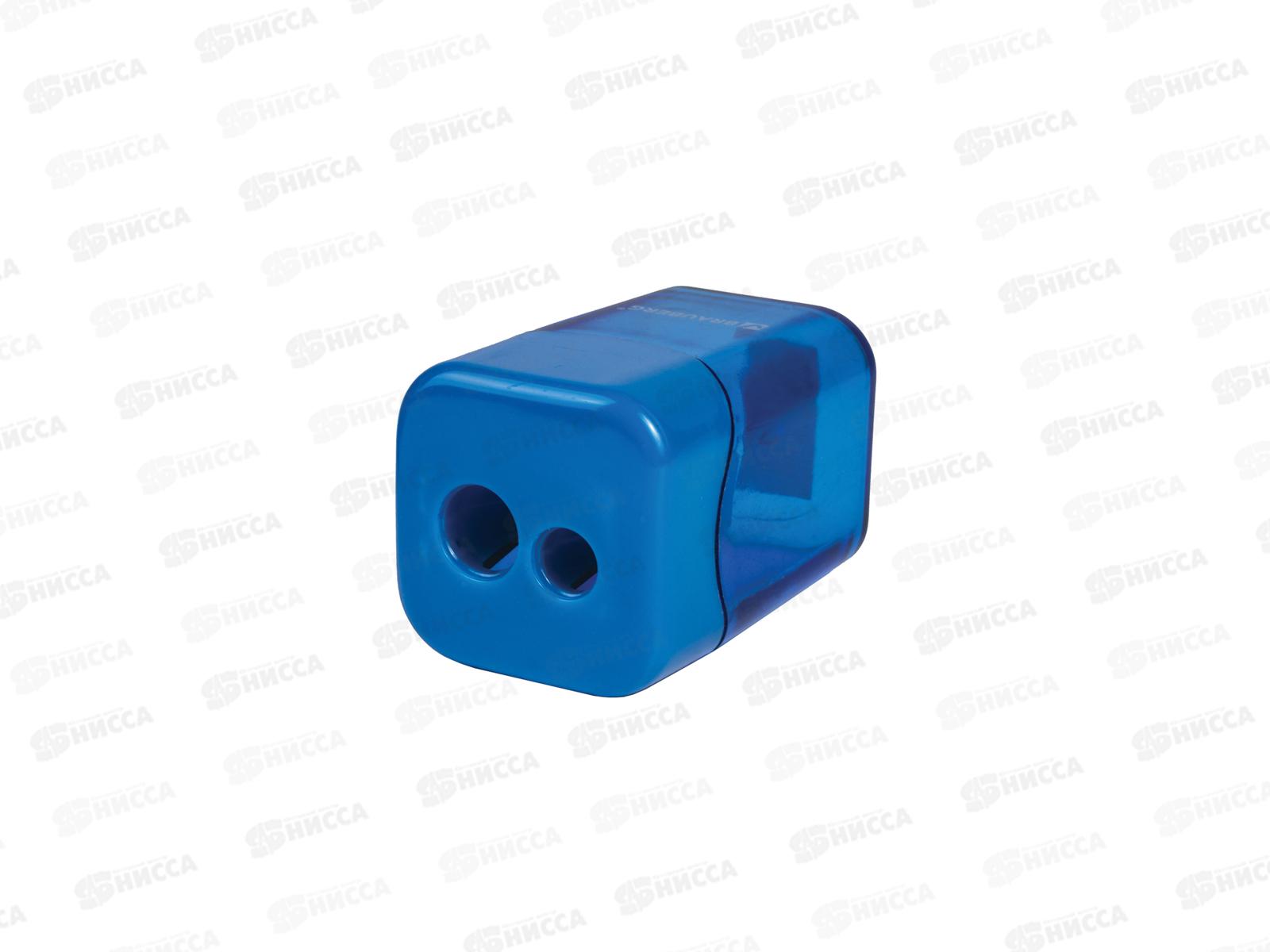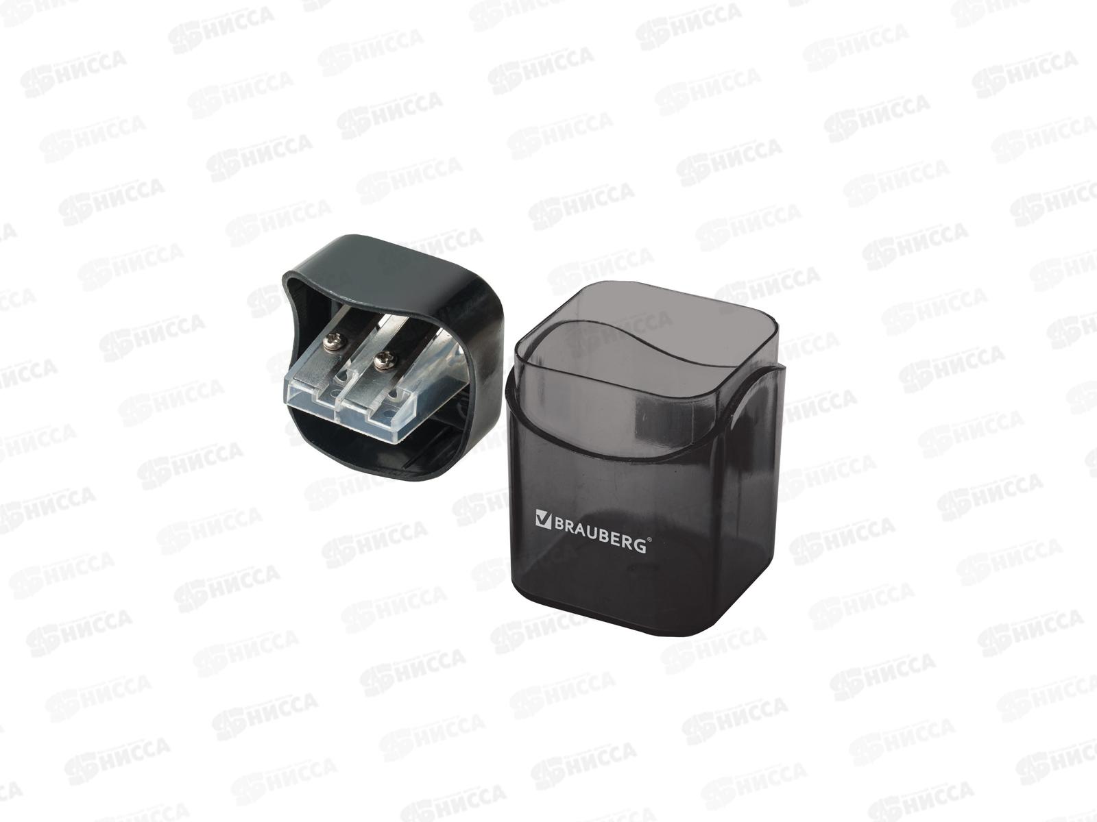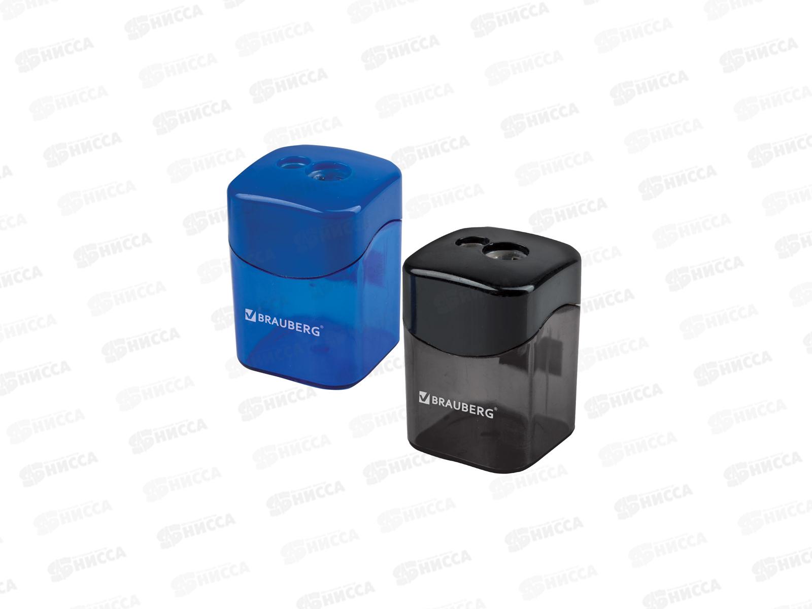Точилка BRAUBERG с контейнером, 2 отверстия, ассортимент, черная/синяя, 222495 *12