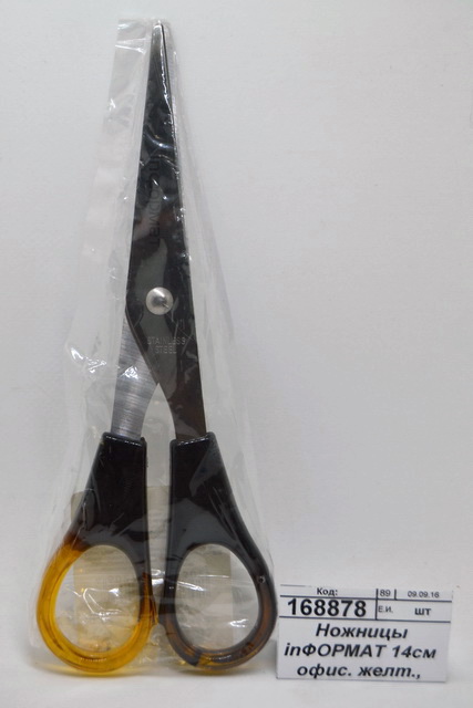 • Ножницы inФОРМАТ SO1401 14см офисные, желтые  *24