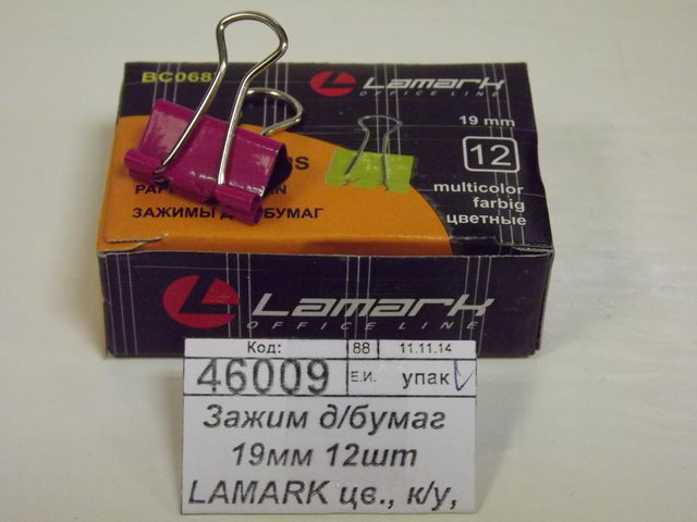 Зажим для бумаг LAMARK, BC0687 19мм 12шт неоновый, картонная упаковка *12