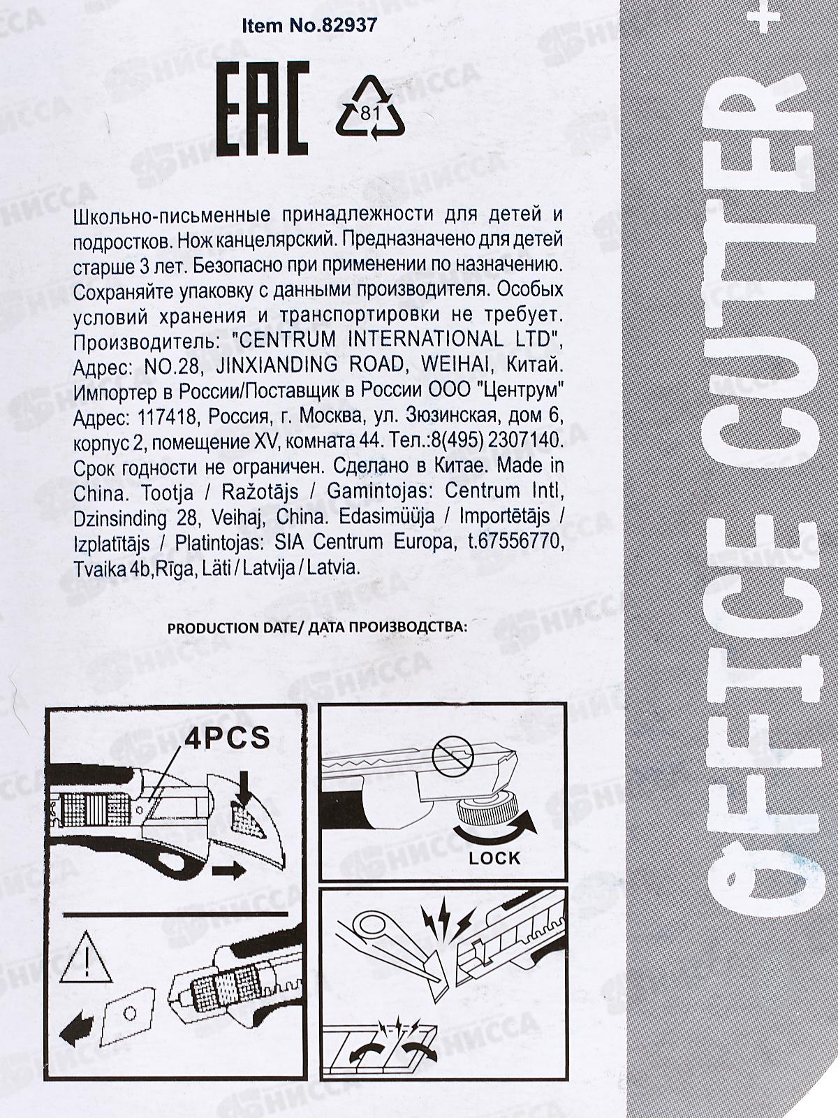 Нож канцелярский CENTRUM 82937 18мм+запасное лезвия *12/96