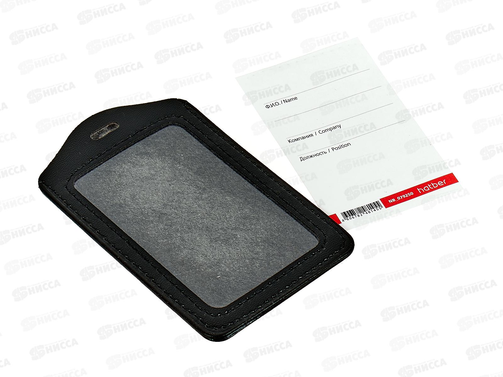Бейдж Hatber вертикальный 72*112мм, черный, экокожа 079250*12