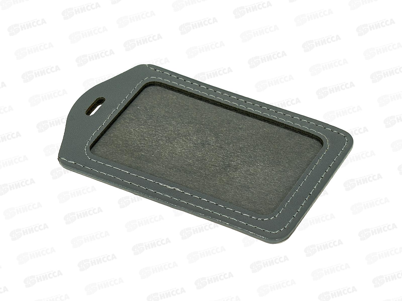 Бейдж Hatber вертикальный 72*112мм, серый, экокожа 079256 *12