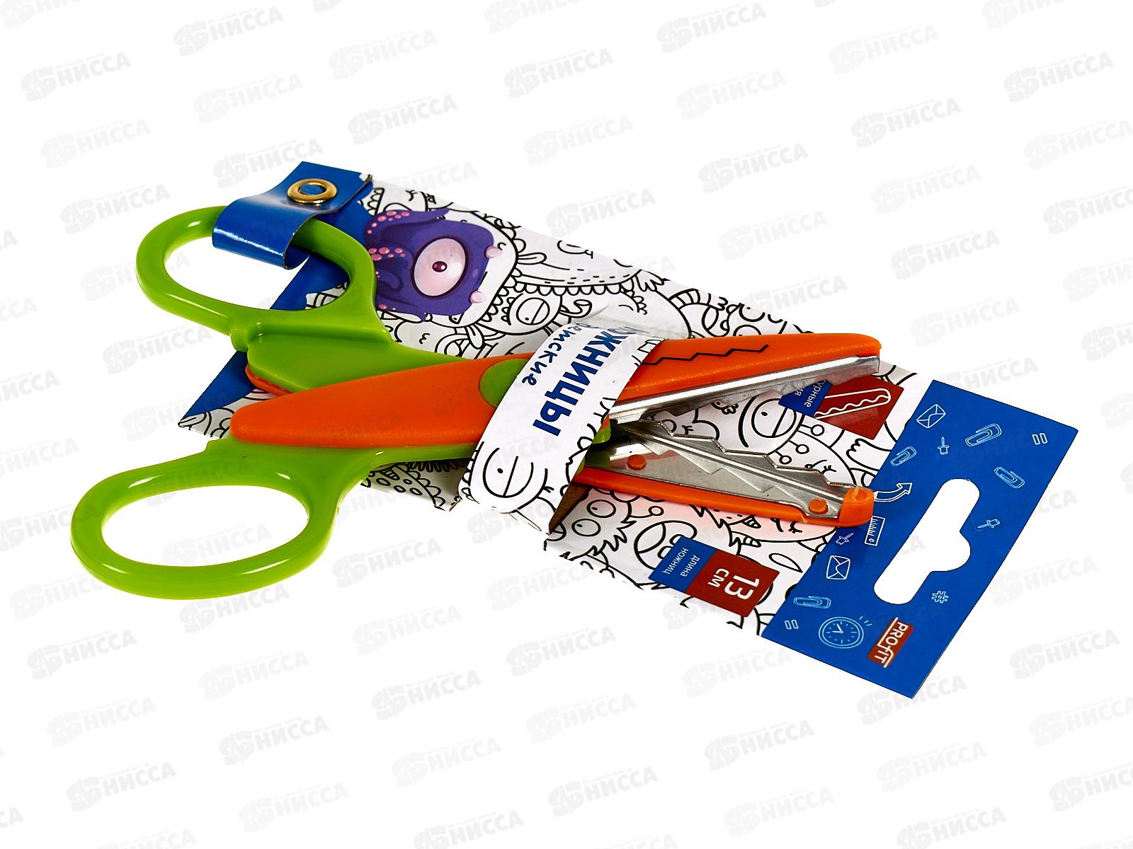 Ножницы детские Profit Монстрики, 13см оранж.-зеленые с фиг. лез. НЖ-1153 *12