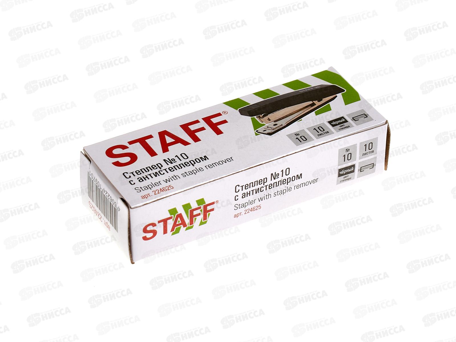 Степлер №10 STAFF Basic. до 10л, антистеп., черный 224625 *24/288