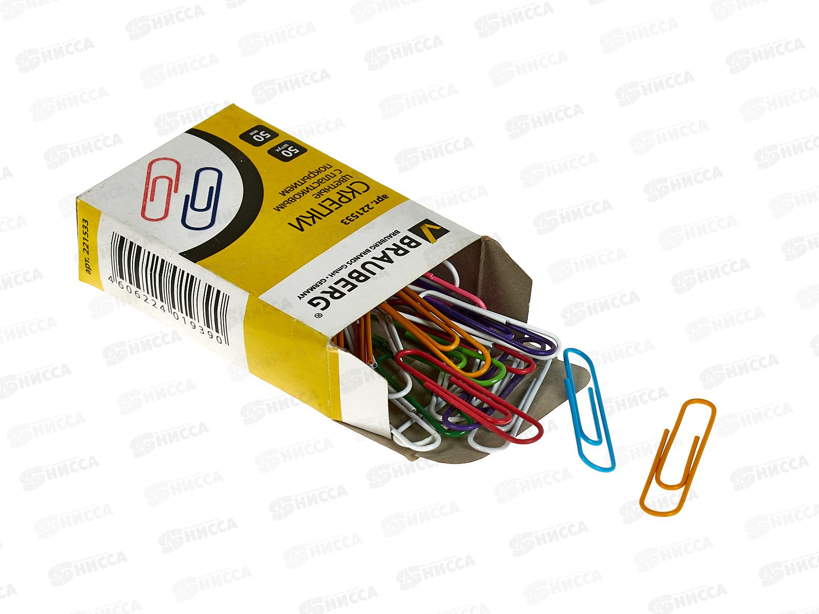 Скрепки BRAU 50мм 50шт цветные, 221533 *24