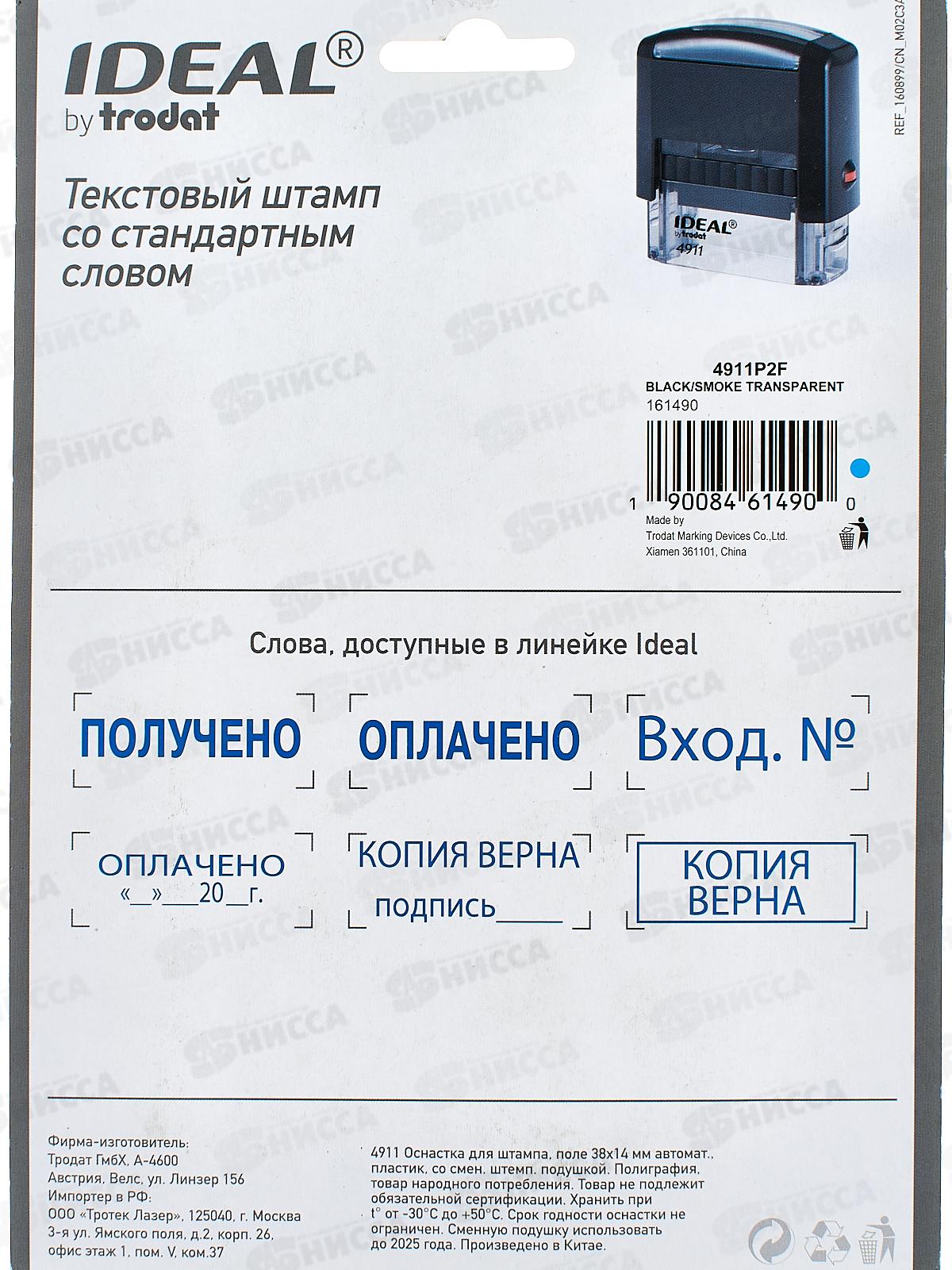 Штамп. IDEAL Копия верна в рамке 38*14,4911 161490