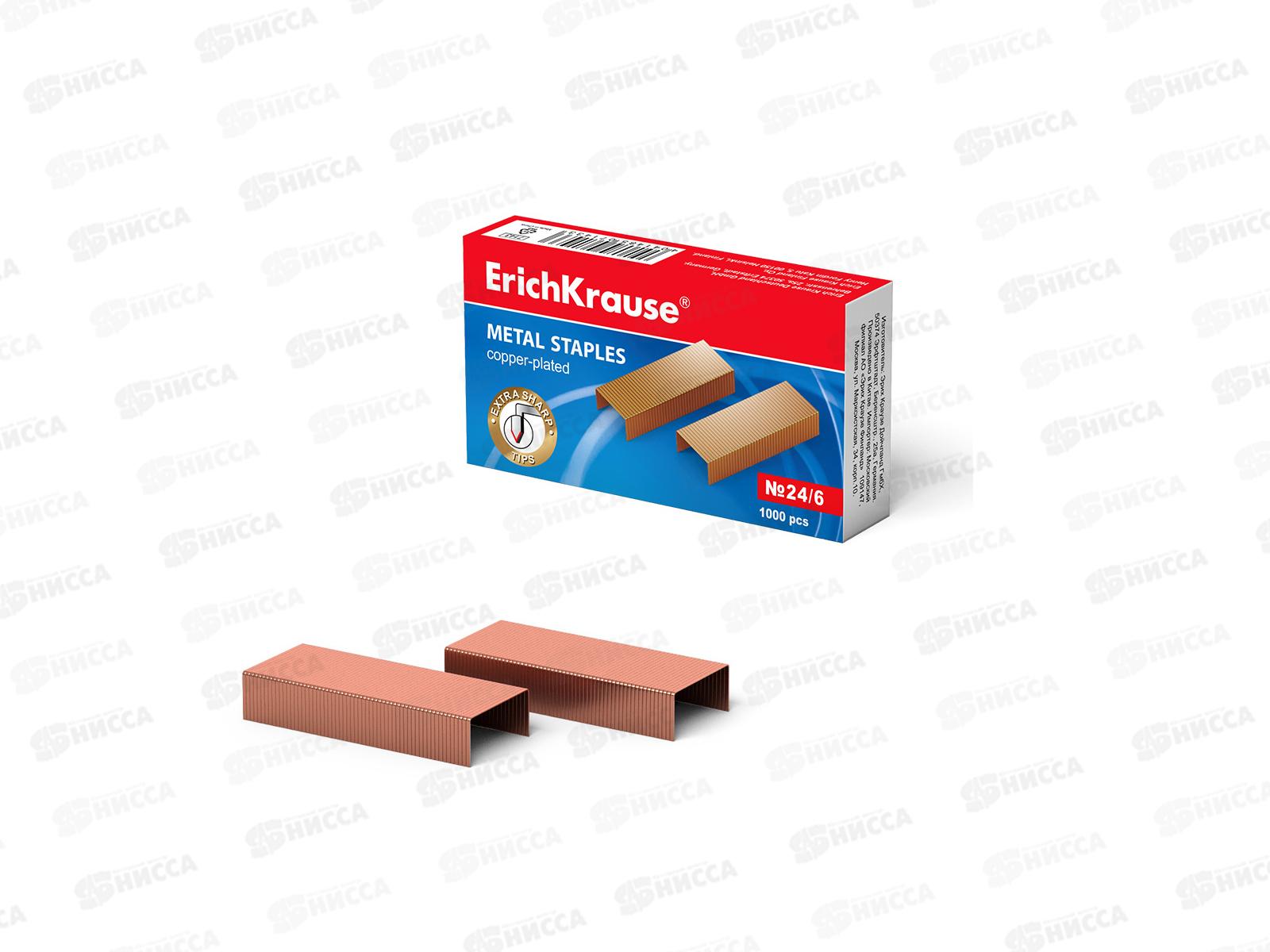 Скобы для степлера №24 ErichKrause 1000шт, медные, 7143 *10/500