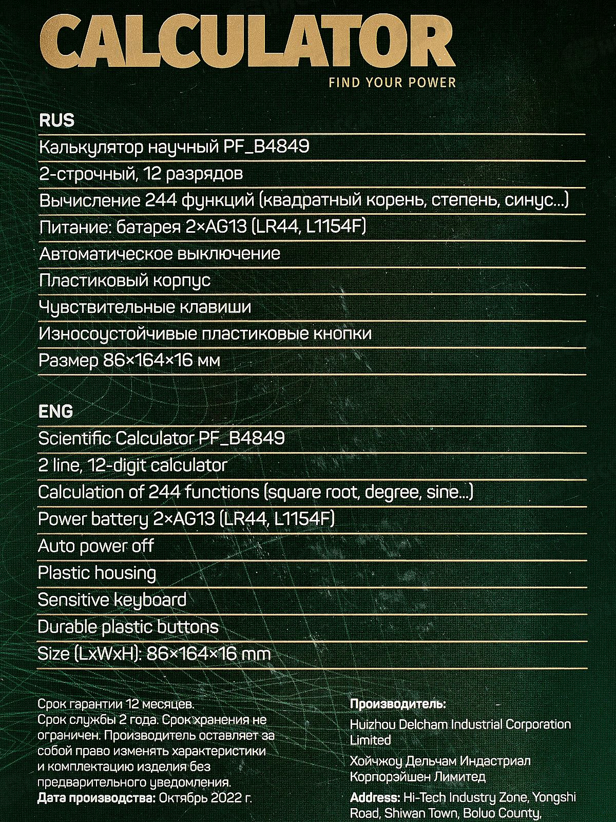 Калькулятор Perfeo PF B4849, научный, 2-строчный, 12-разр., серый