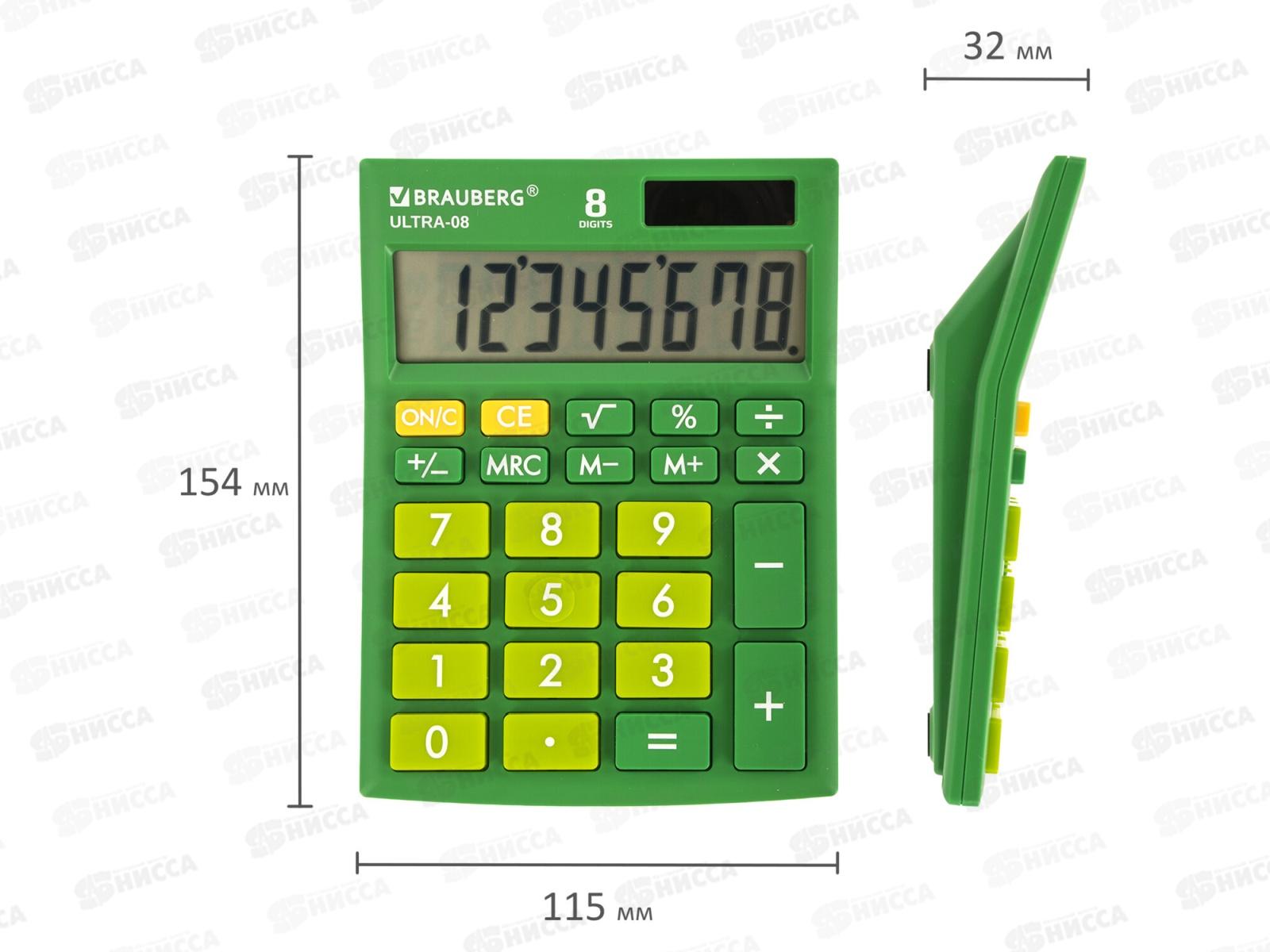 Калькулятор BRAU 8разряд.,компакт. зелен.,250509*200