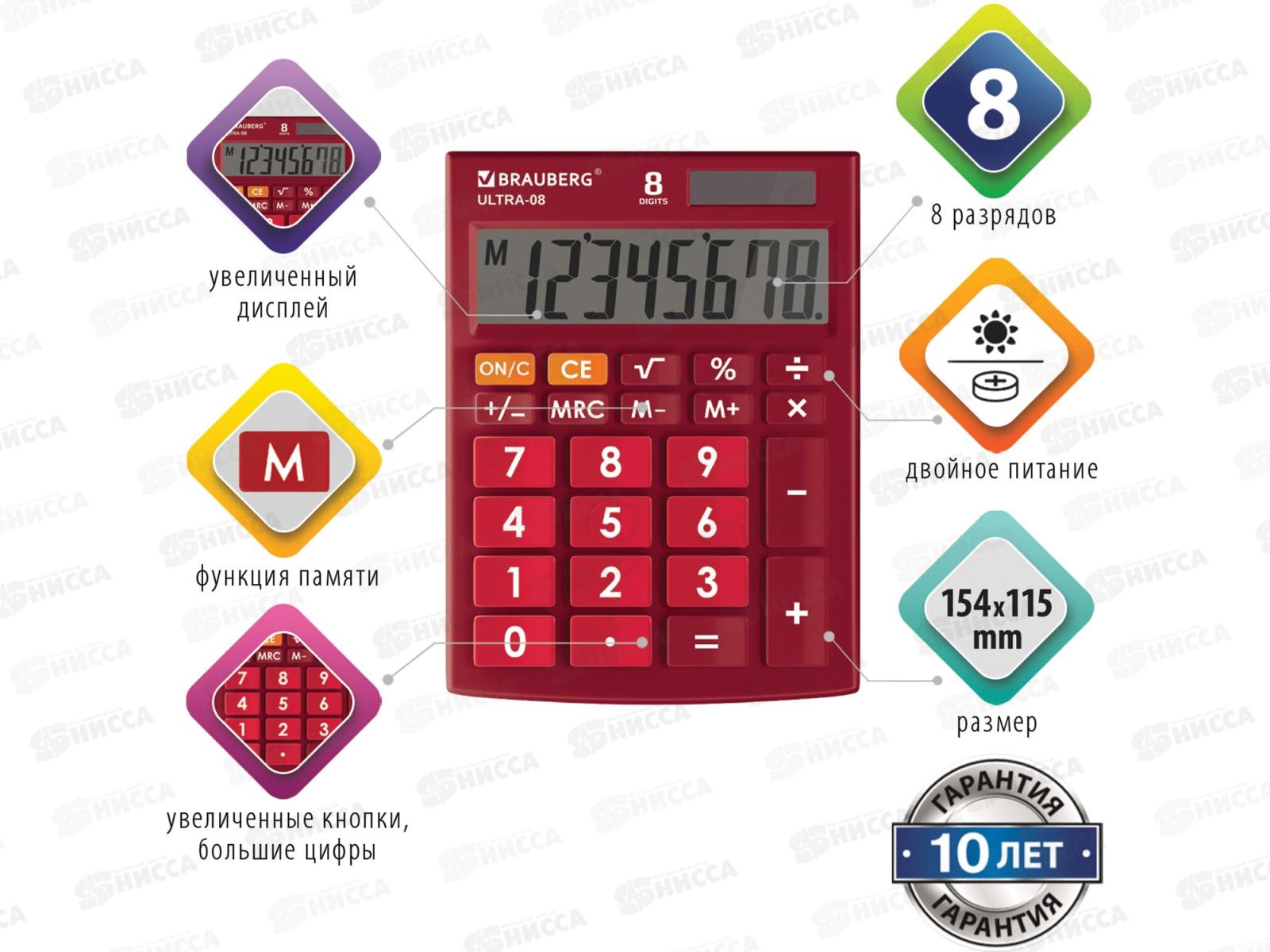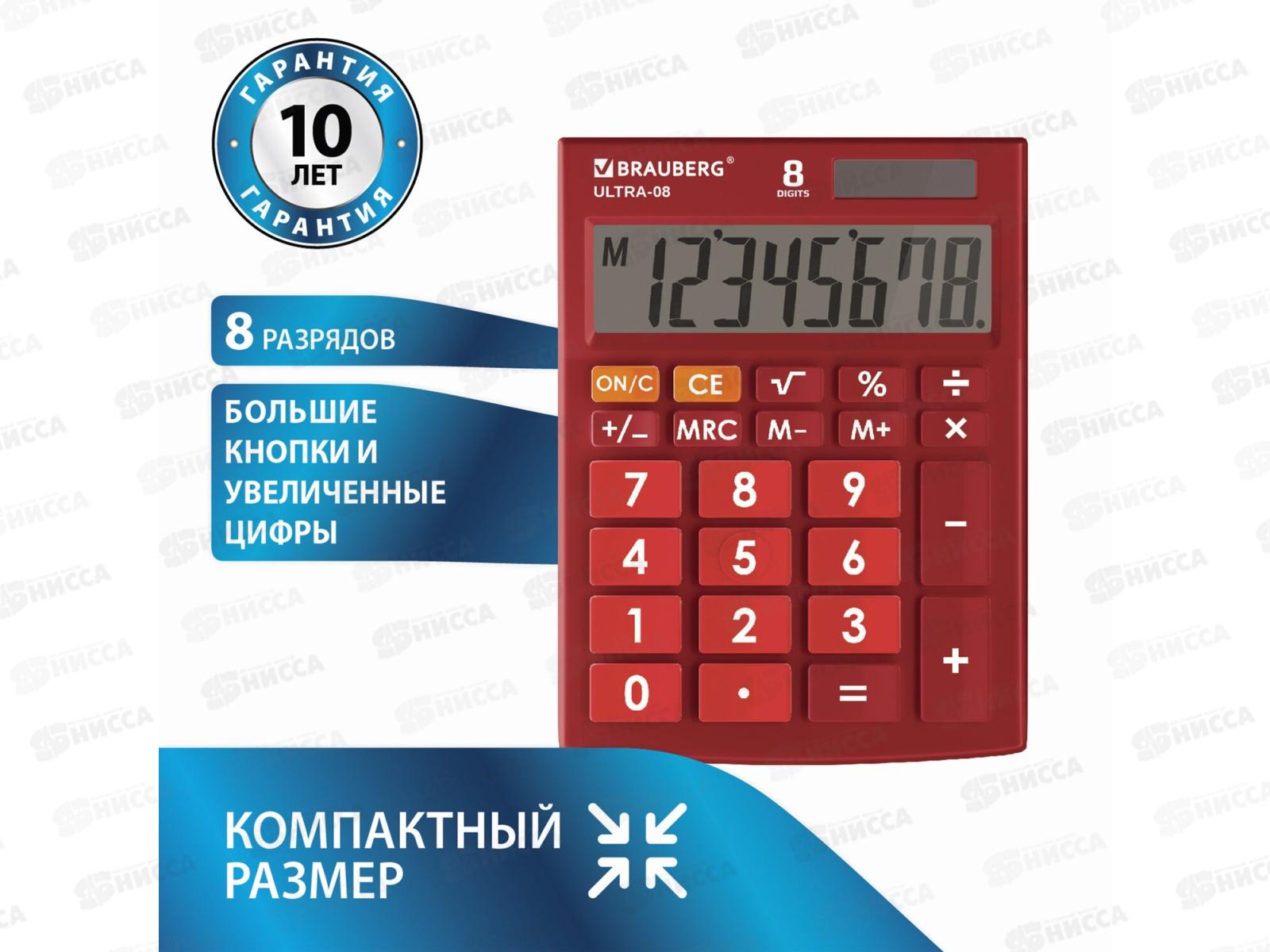 Калькулятор BRAU 8разрядый,компакт.бордовый.,250510*200