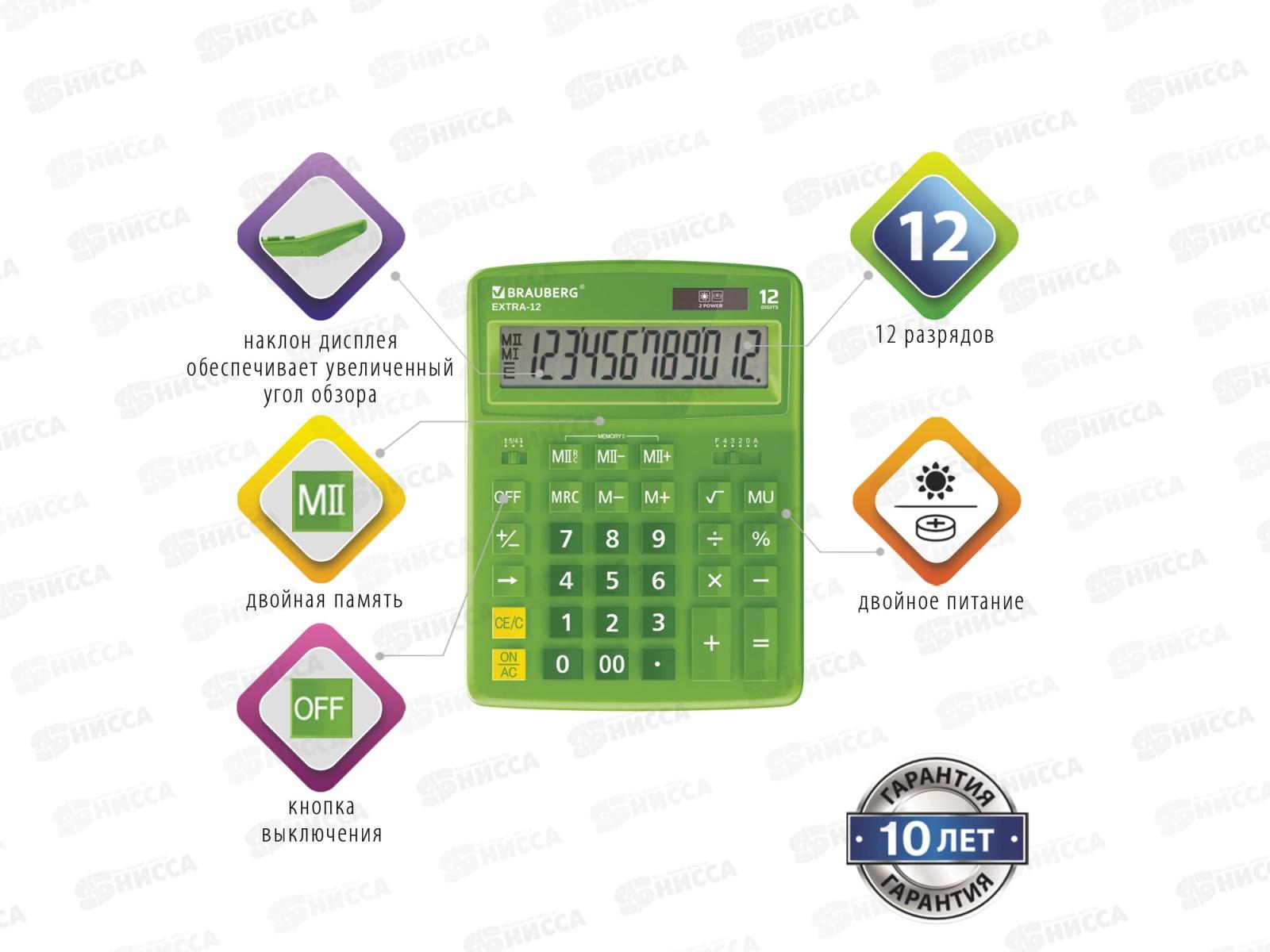 Калькулятор BRAU 12разрядный,зеленый.,250483*200