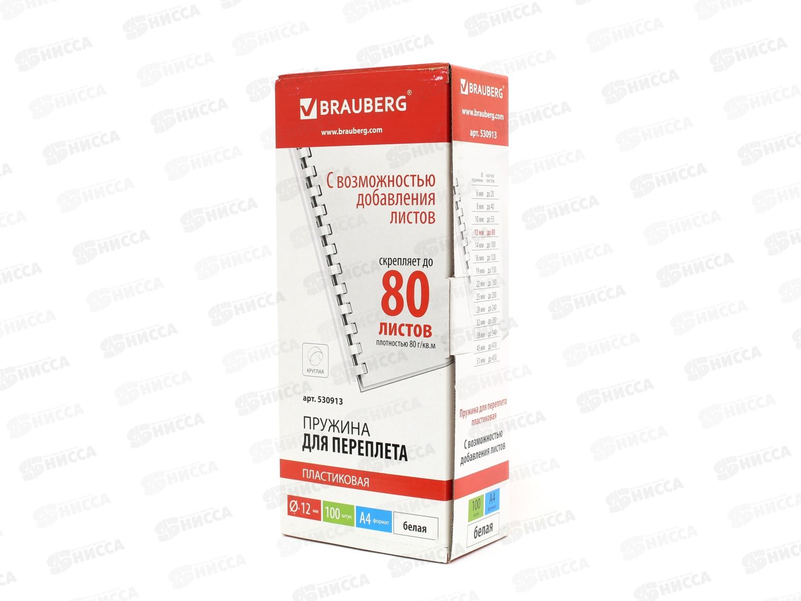 Пружина пластиковая для переплета BRAU 12мм белые, 100шт, 530913