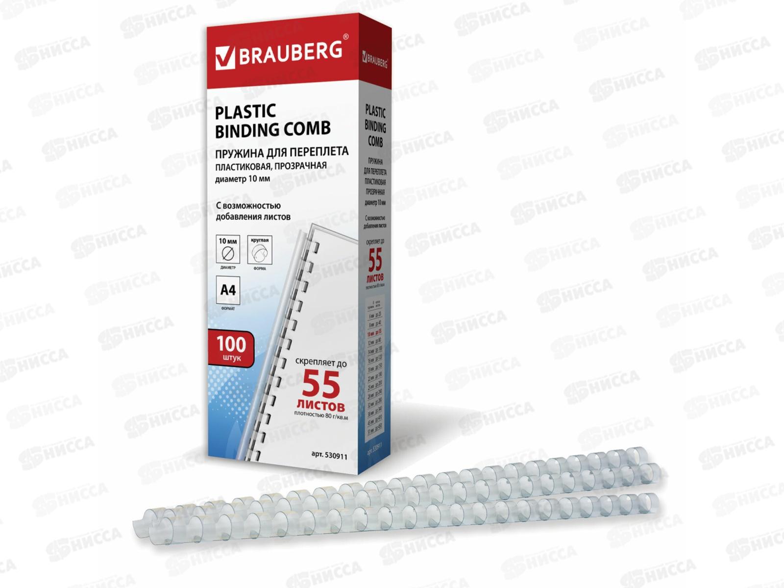 Пружина пластиковая для переплета BRAU 10мм прозр, 100шт, 530911