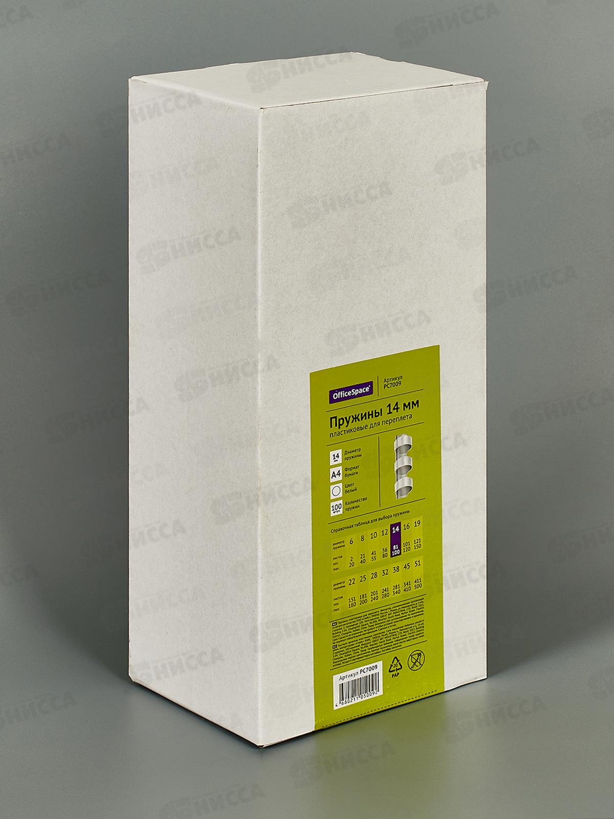 Пружина пл./переп. OfficeSpace 14мм белая, 100шт, PC7009 *20