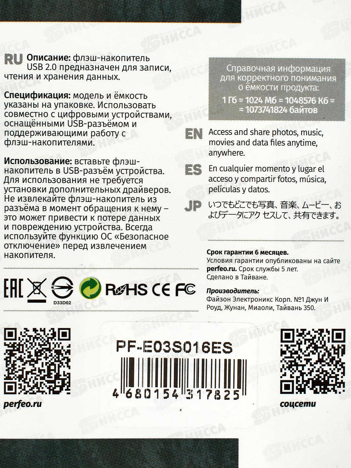 Флеш-карта Perfeo USB 16GB Е03 Silver economy series