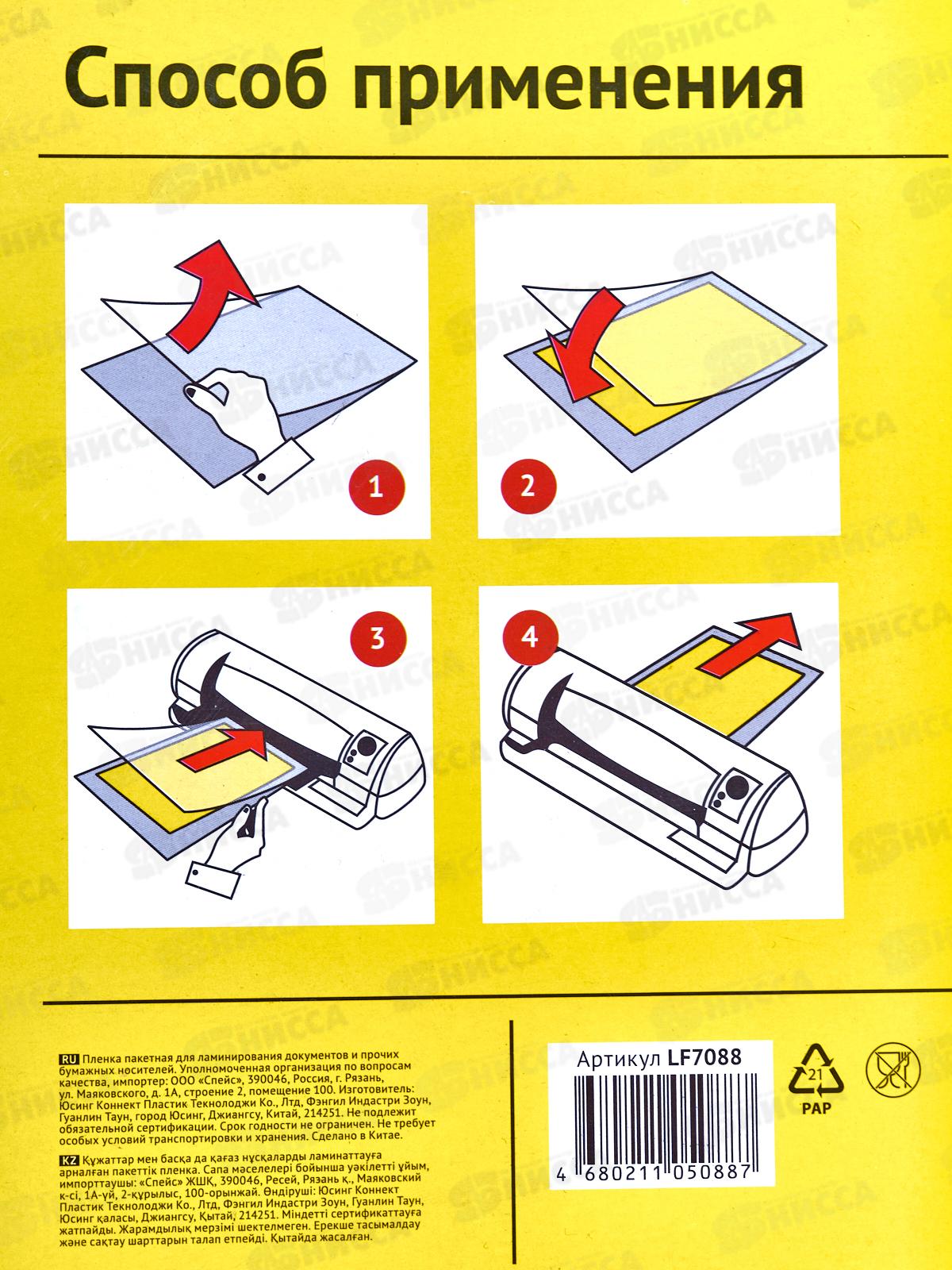 Пленка д/лам. OfficeSpace А4 80мкм, 100шт, глянцевая LF7088