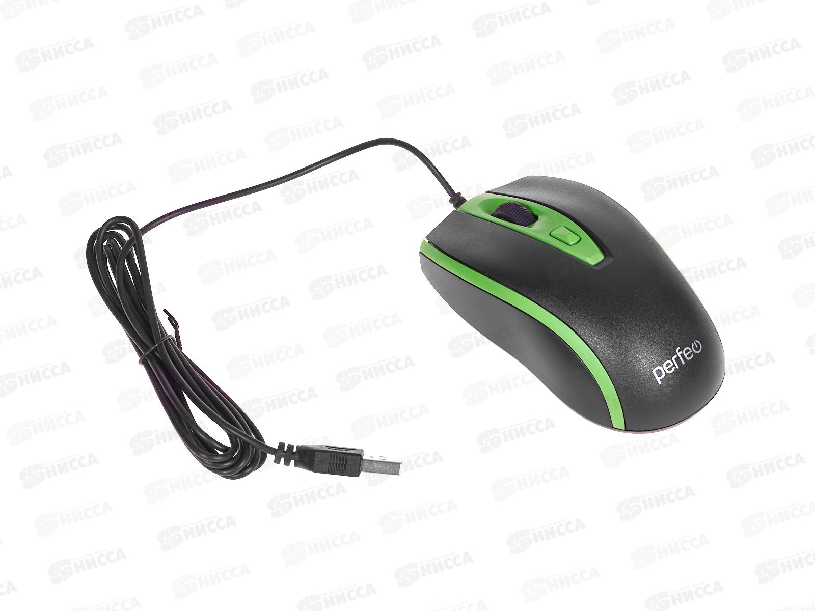 Мышь PERFEO оптическая PROFIL 4 кнопки, USB, черно-зеленая, PF_4929