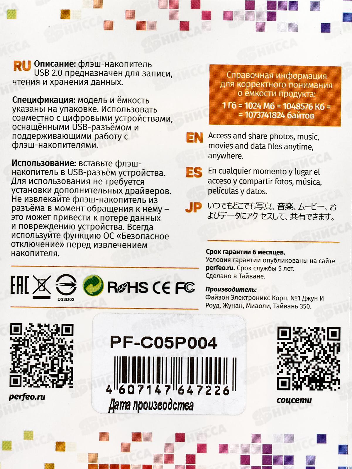 Флеш-карта Perfeo USB 4Gb C05 Purple, PF-C05P004