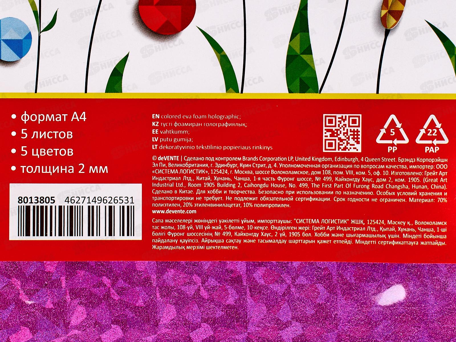 Фоамиран deVENTE А4 5цв. голографический 8013805